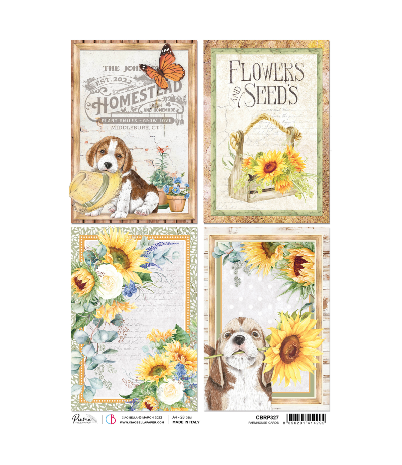 Papier de riz imprimé Ciao Bella 21 x 29.7 cm. Collection FARMHOUSE GARDEN.