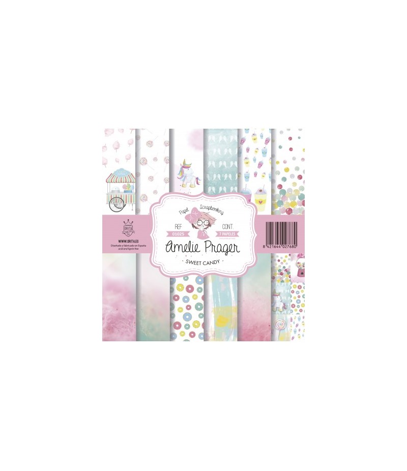 Bloc de 7 feuilles de papier double face (2 motifs) sans acide. AMELIE PRAGER.