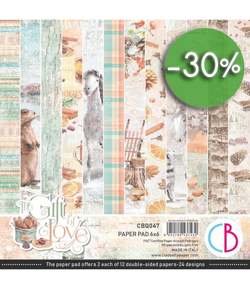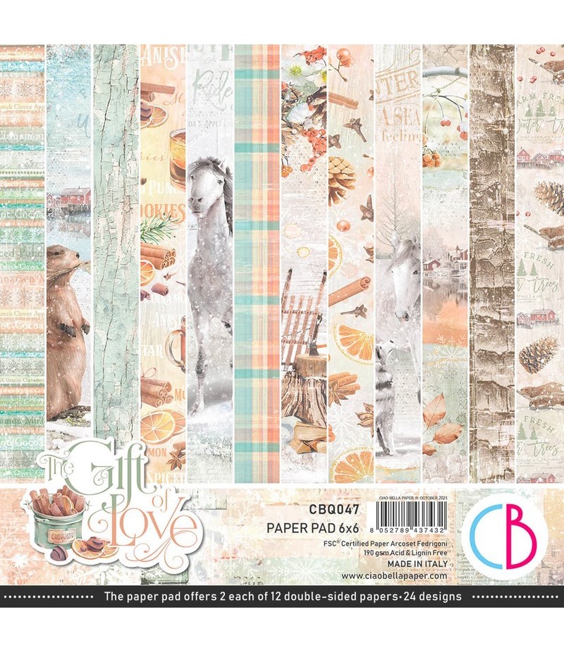 Bloc de 24 feuilles de papier double face (2 motifs) sans acide. Collection THE GIFT OF LOVE de CIAO BELLA. CBQ047