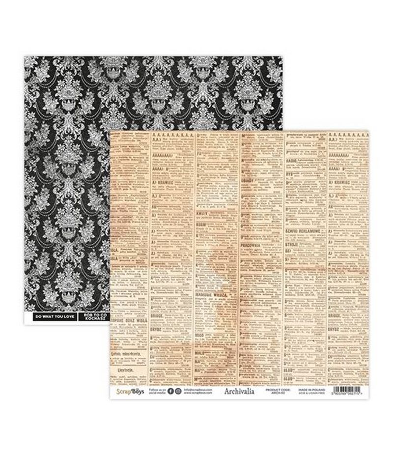 Bloc de 24 feuilles de papier double face (2 motifs) sans acide + 2 bonus dans les couvertures.