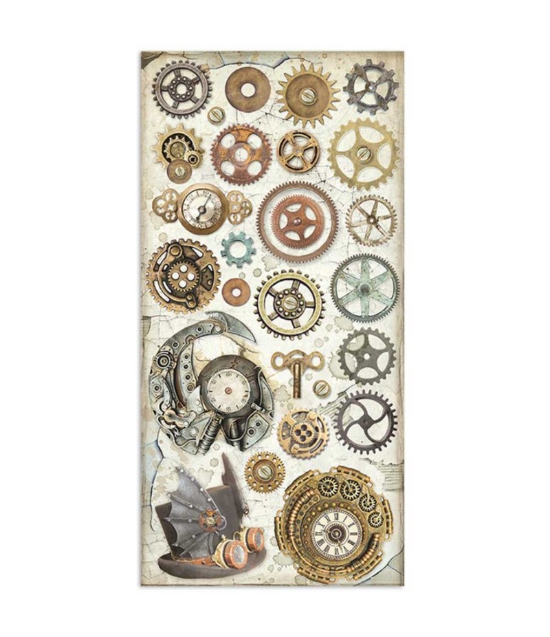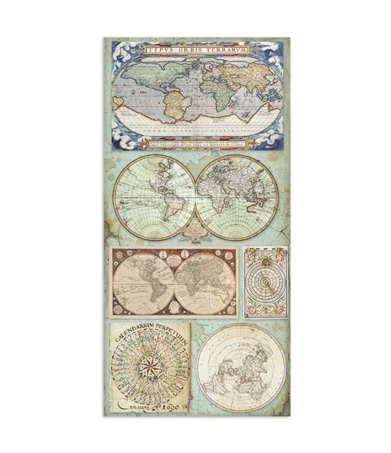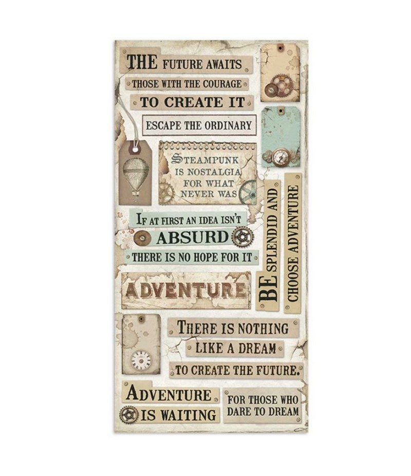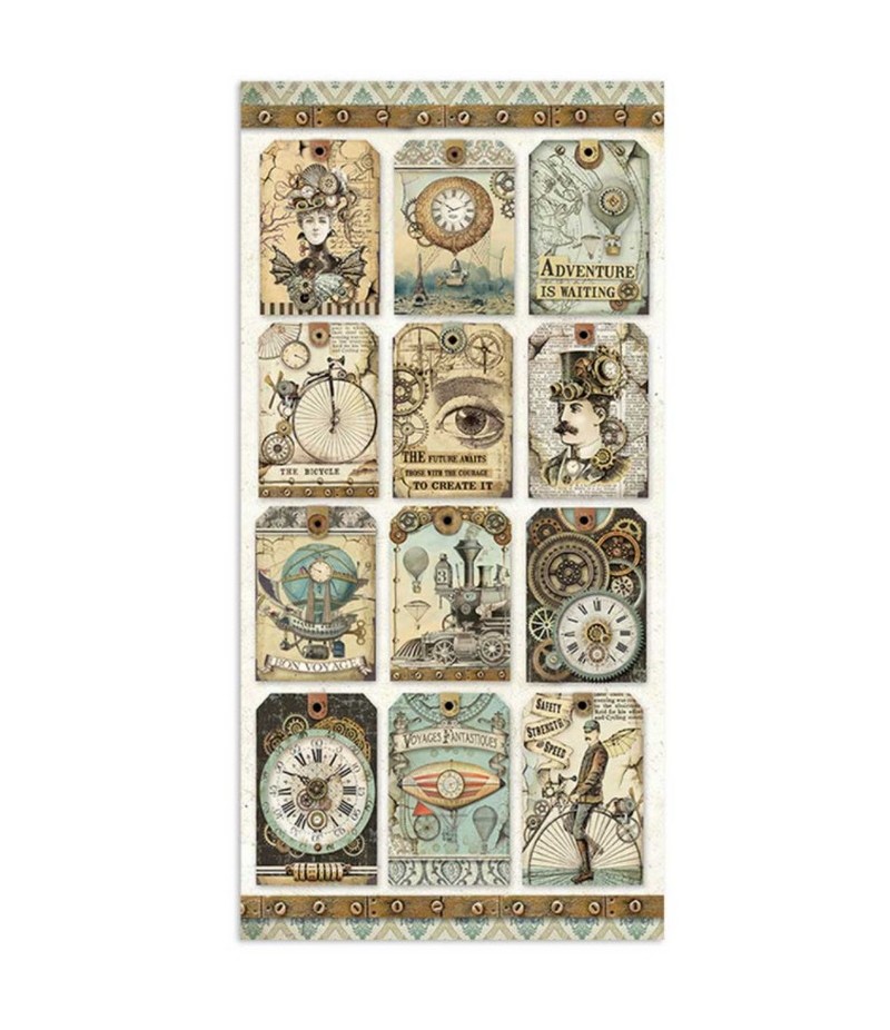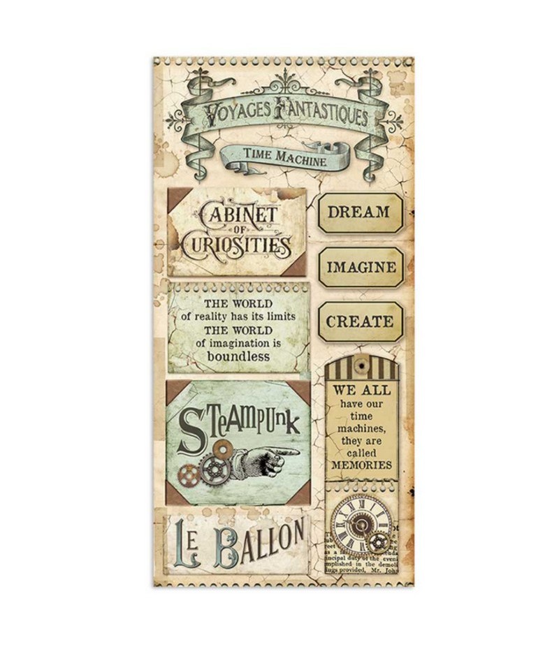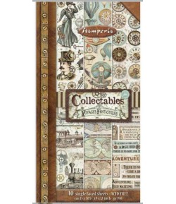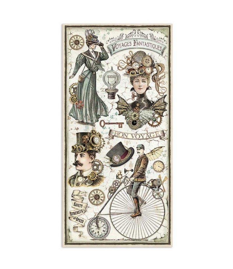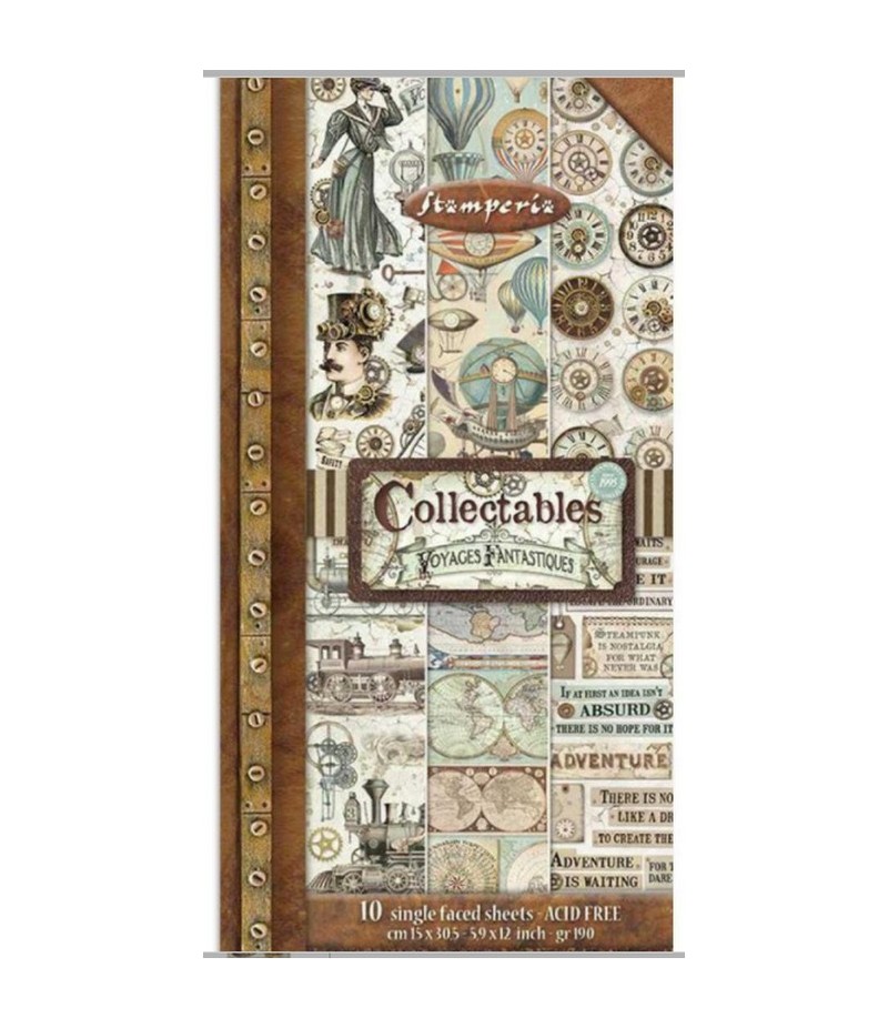 Assortiments de 10 feuilles de motifs scrapbooking à découper, recto verso. Collection VOYAGES FANTASTIQUES de STAMPERIA