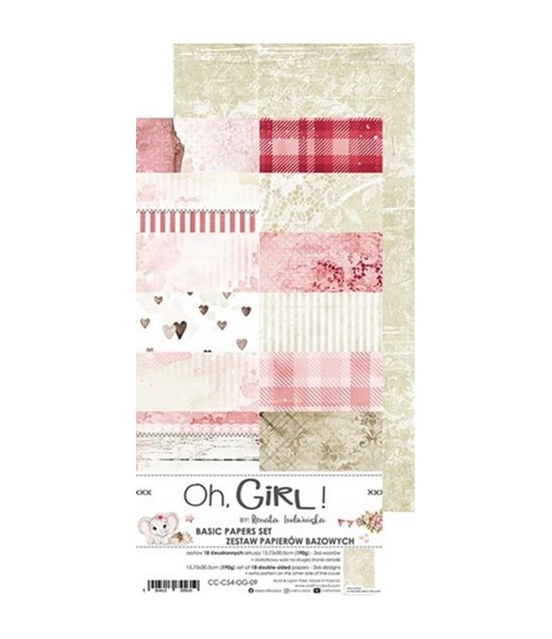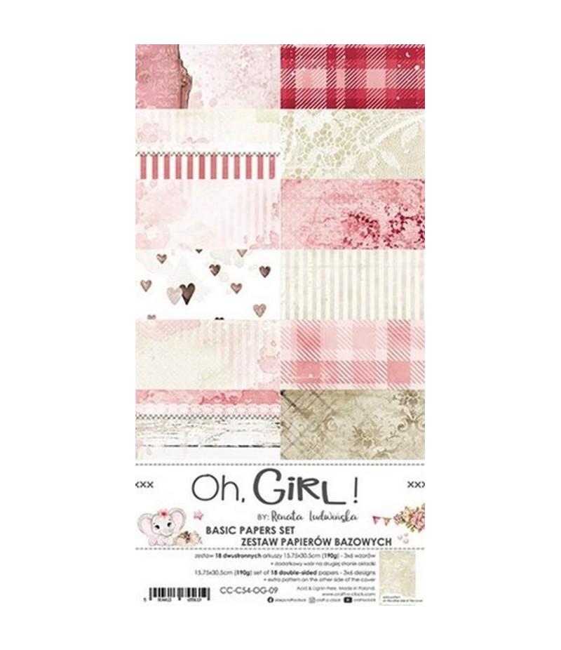 Bloc de 18 feuilles de papier double face (2 motifs) sans acide + 1 bonus sur la couverture, de la marque Craft O Clock.
