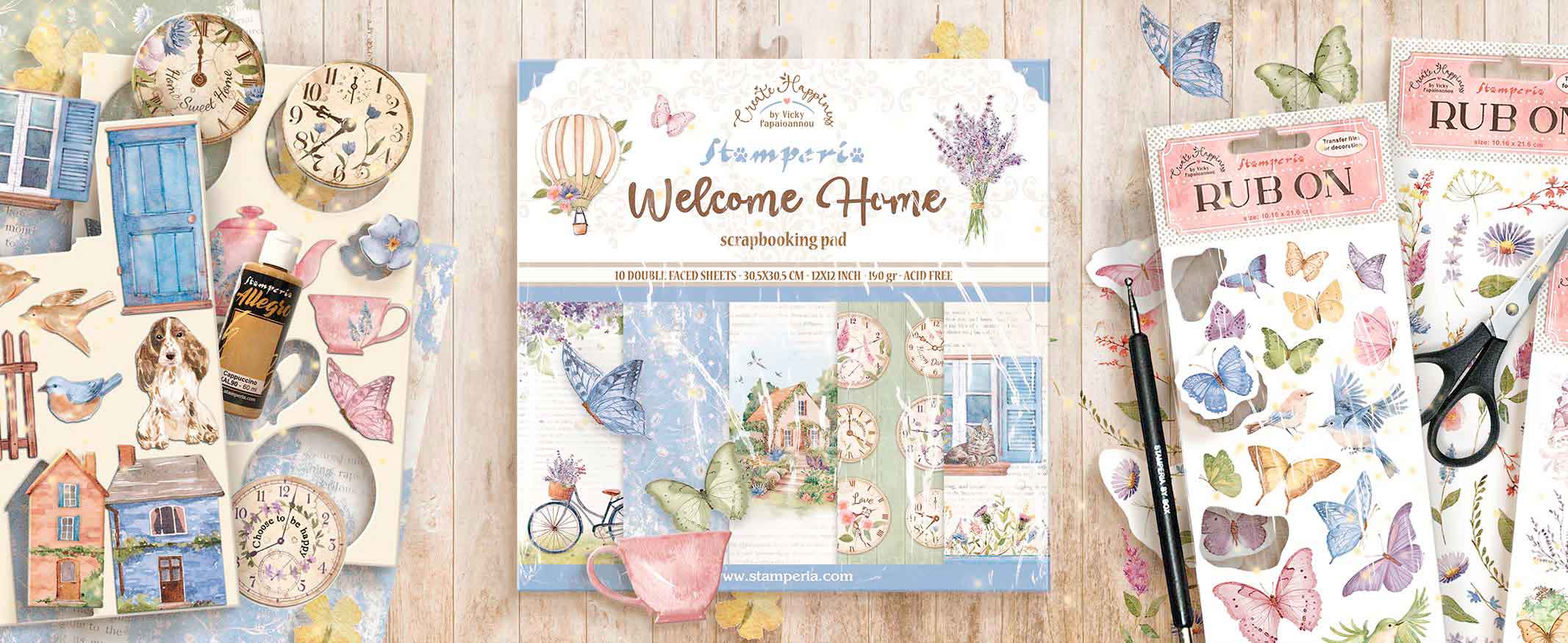 Des couleurs douces et des motifs délicats dans cette nouvelle collection WELCOME HOME par Vicky Papaioannou pour Stampéria. Comme d'habitude vous pourrez vous amuser avec les moules, papiers de riz, tampons, pochoirs, papiers, die cuts… Et ce n'est pas tout ! 6 nouvelles couleurs d'encres viennent compléter la gamme des DYE INK PAD, elles sont idéales pour réaliser vos fonds de pages ou de cartes. Si vous n'avez pas encore eu l'occasion de les tester, foncez ! Ici on les adore.