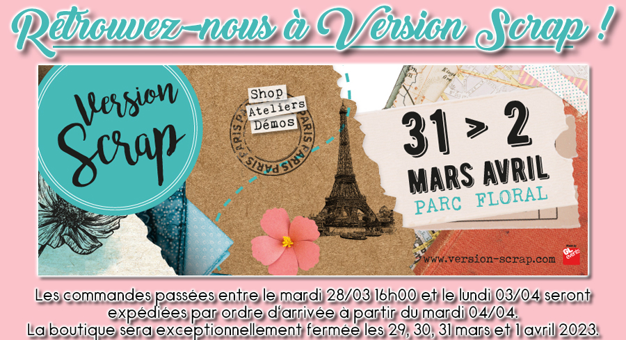 En route pour notre deuxième participation à Version Scrap au parc Floral de Paris du 31 mars au 2 avril. Nous avons hâte de vous y voir, plus que quelques jours de patience !