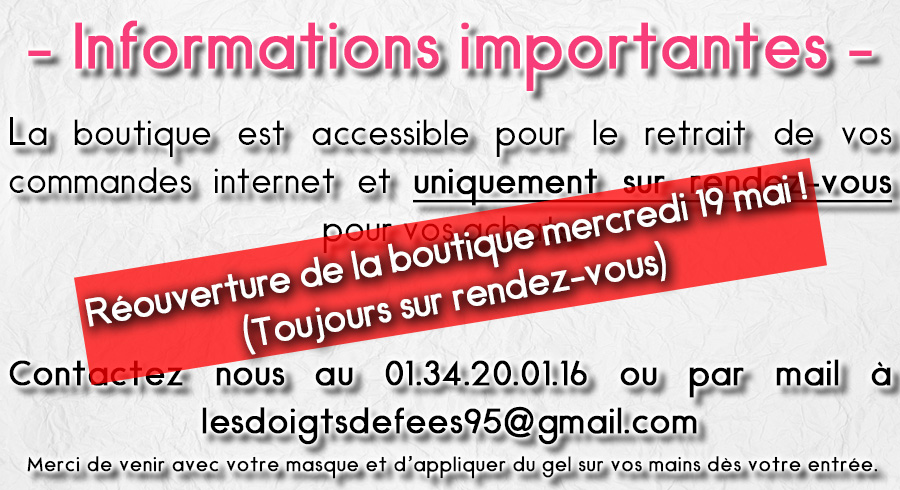 Dès mercredi 19 mai, nous aurons à nouveau l'autorisation (et le plaisir) de vous accueillir à la boutique.