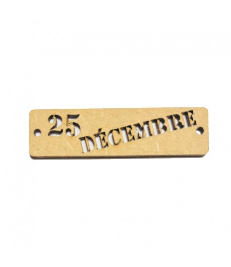SUJET BOIS ETIQUETTE 25 DECEMBRE 6X1.6CM