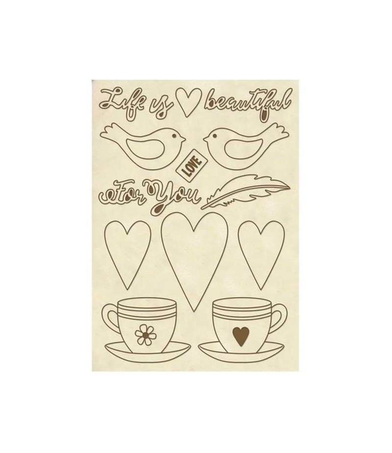 15 formes en bois pour embellir vos créations. Idéales pour la technique du mixed media.