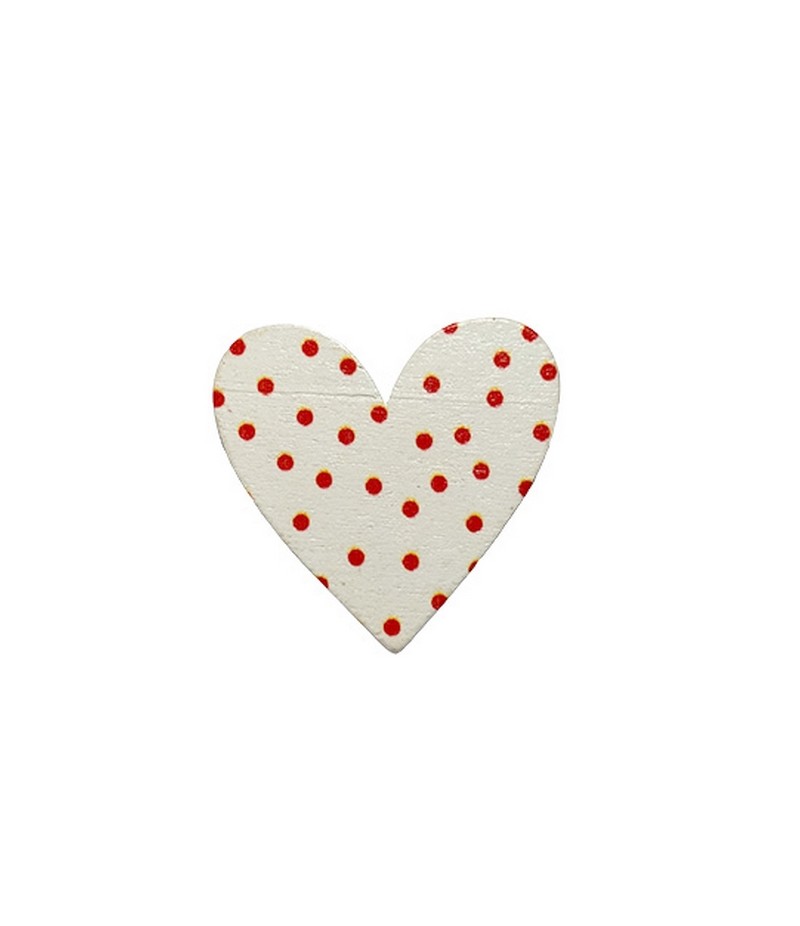 COEUR EN BOIS - BLANC POIS ROUGES