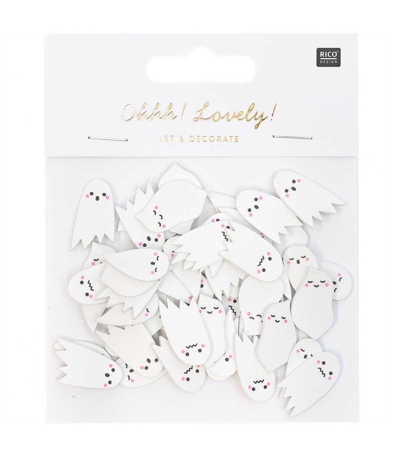 Assortiments de 48 confettis en bois colorés.