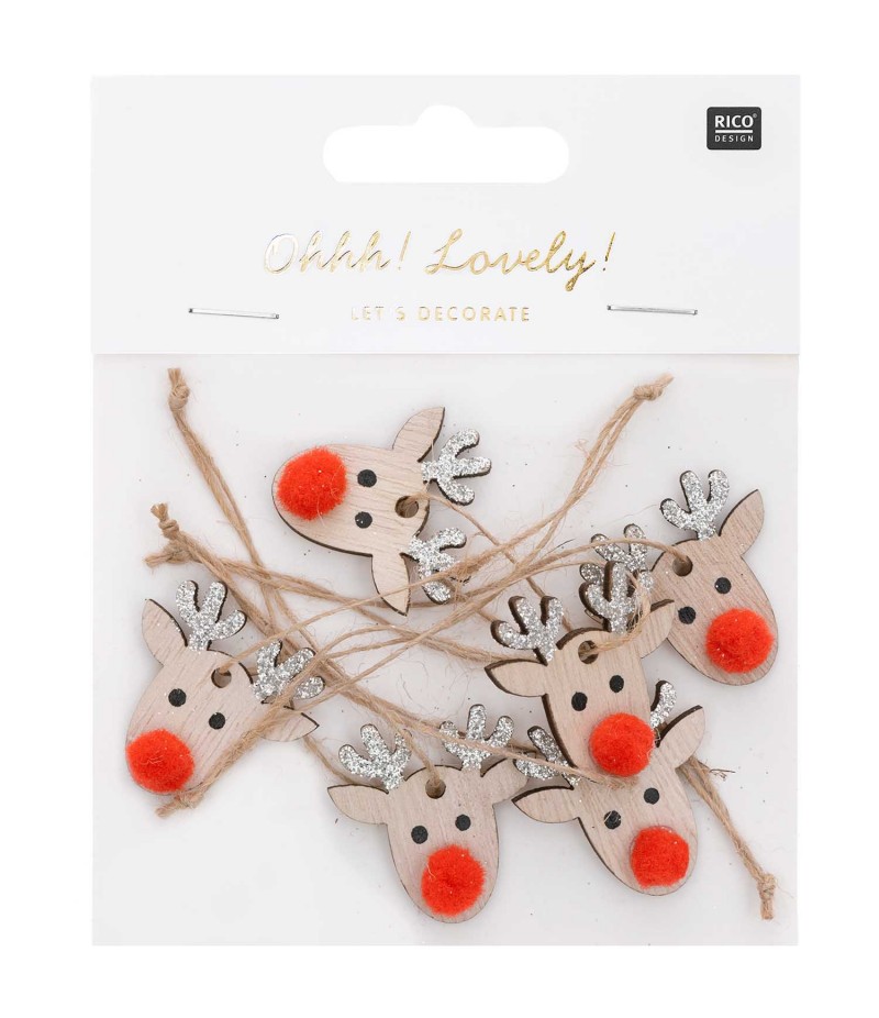 SUJETS RENNES EN BOIS ARGENT A SUSPENDRE X6