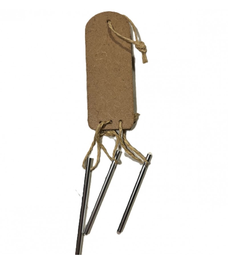 Petit carillon en médium à décorer. Contient support en bois, petits tubes en métal et cordelettes.