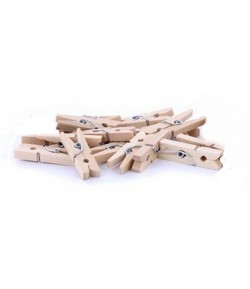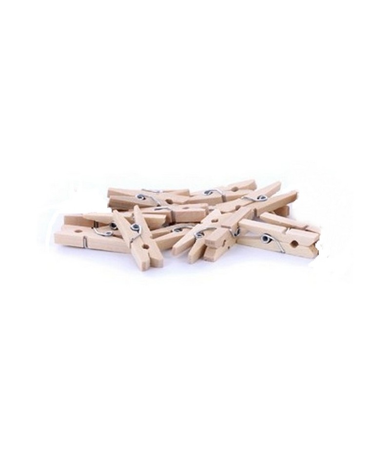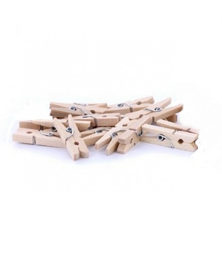 Lot de 10 pinces à linge en bois naturel.