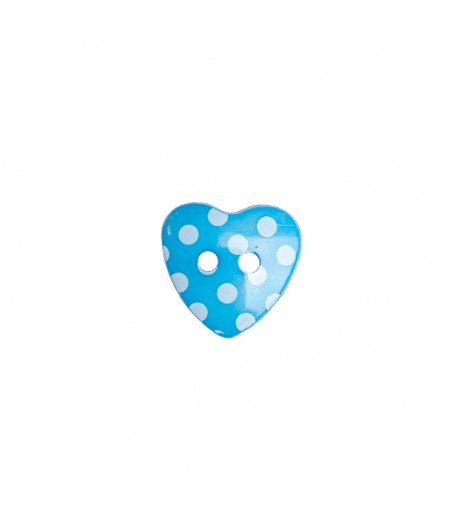 BOUTON EN PLASTIQUE COEUR POIS - BLEU