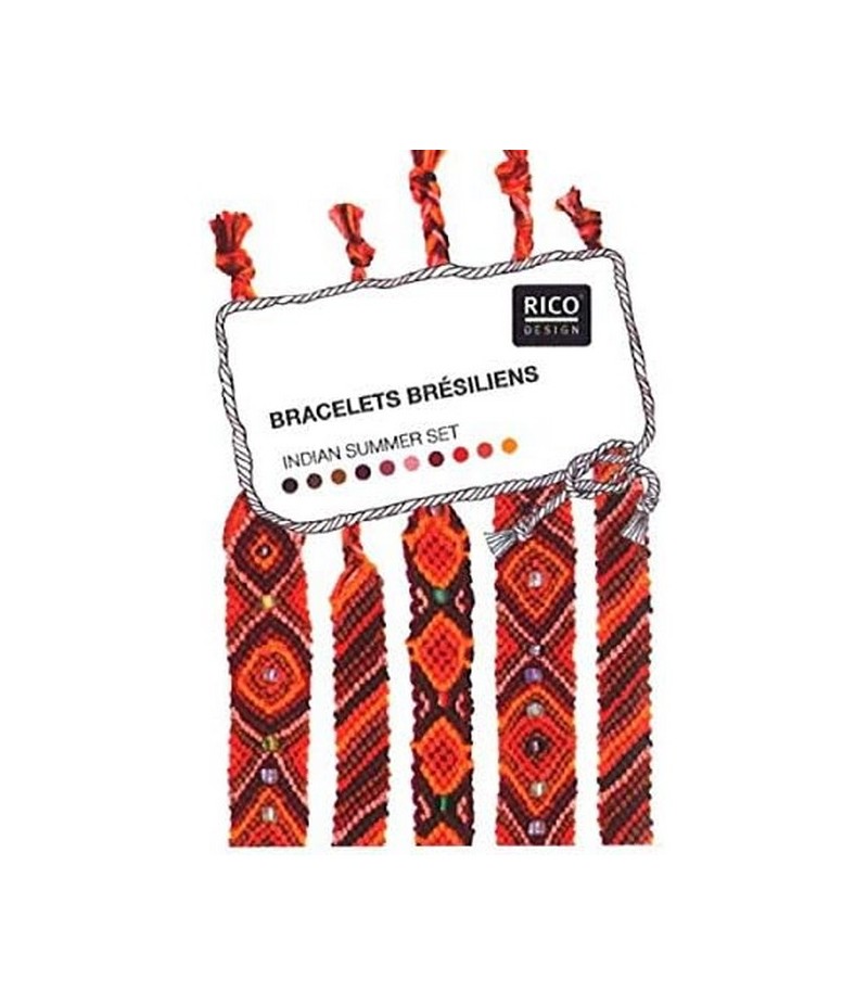 Kit pour réaliser plusieurs bracelets brésiliens Rico Design contenant : 30 fils en coton perlé couleurs assorties, prédécoupés en longueurs de 130 cm, une boîte de perles, une épingle et une notice explicative.