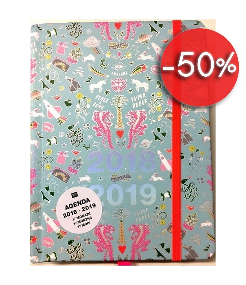 Agenda 2018/2019 Wonderland composé de 17 mois datés (d'Aout 2018 à décembre 2019).