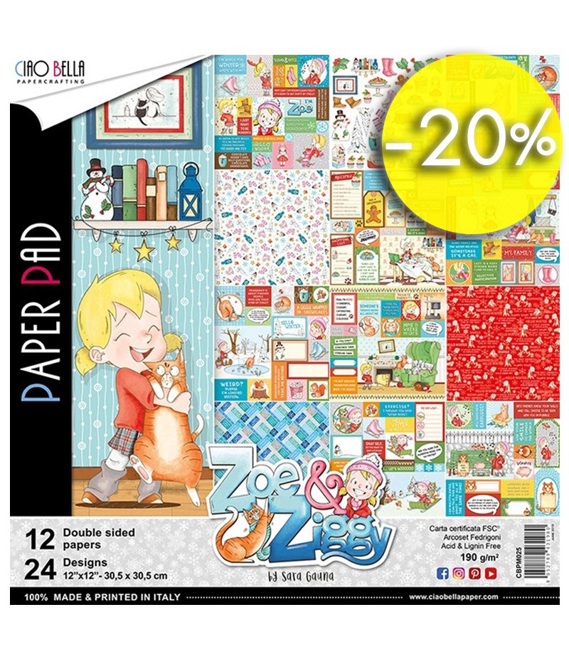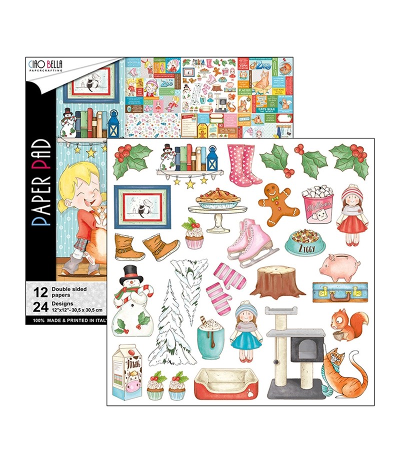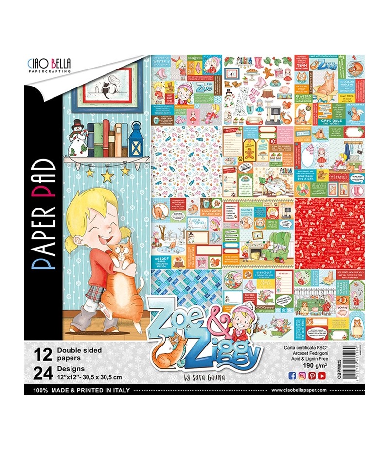 Bloc de 12 feuilles de papier double face (2 motifs) sans acide. CIAO BELLA.