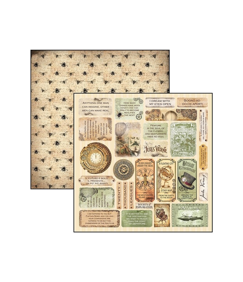 Feuille de papier double face (2 motifs) sans acide collection Voyage Extraordinaire de Jules Verne de Ciao Bella.
