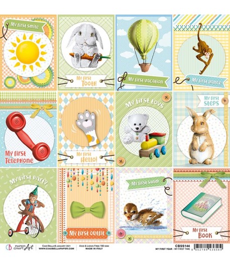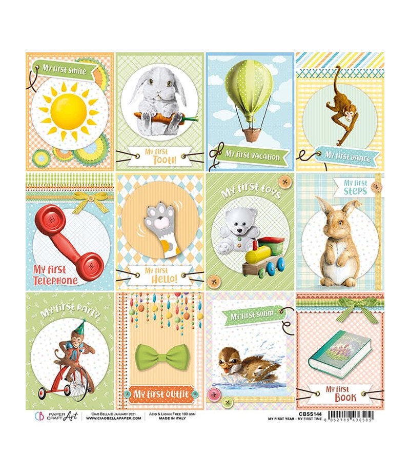 Feuille de papier double face (2 motifs) sans acide collection MY FIRST YEAR de Ciao Bella.