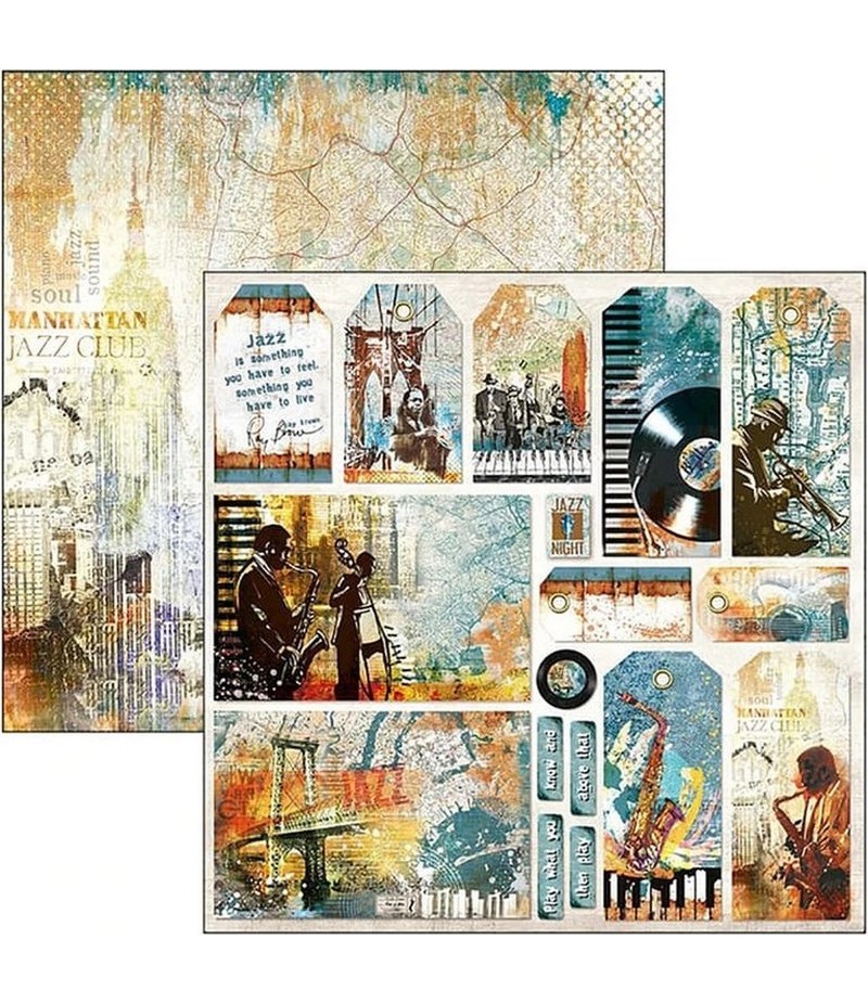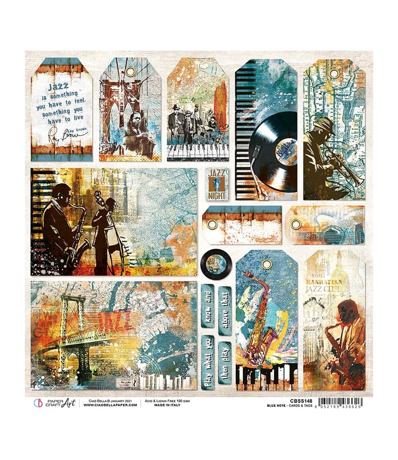 Feuille de papier double face (2 motifs) sans acide. Collection BLUE NOTE de CIAO BELLA.