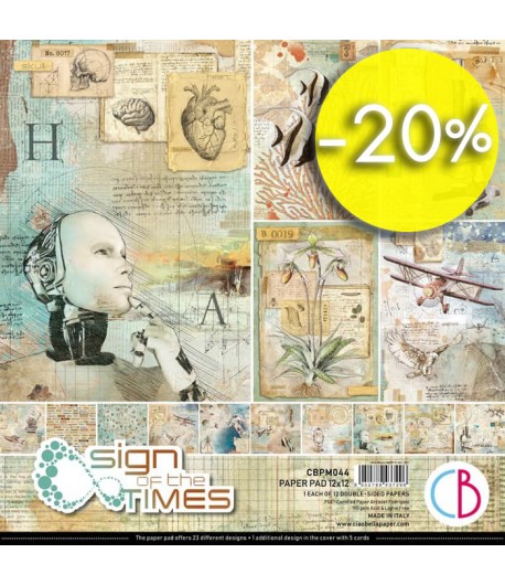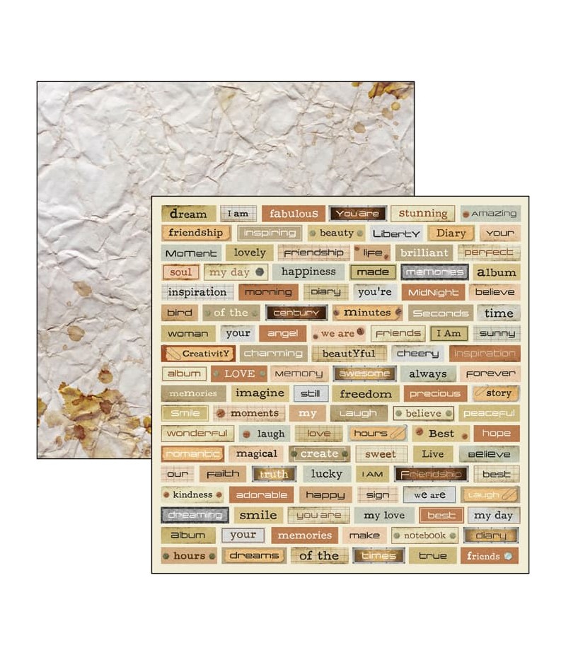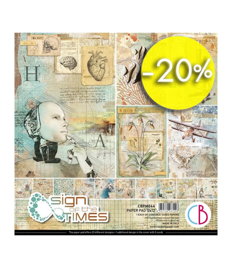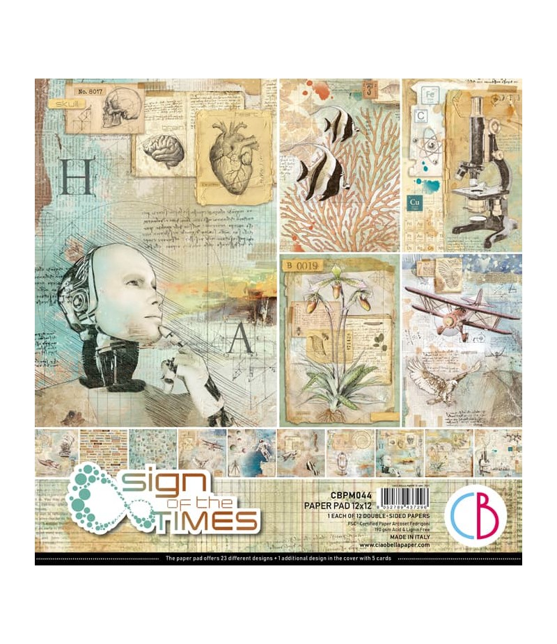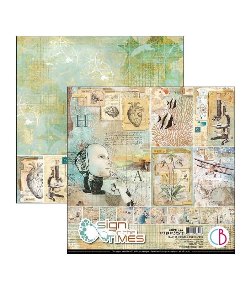 Bloc de 12 feuilles de papier double face (2 motifs) sans acide. Collection SIGN OF THE TIME - CIAO BELLA. CBPM044