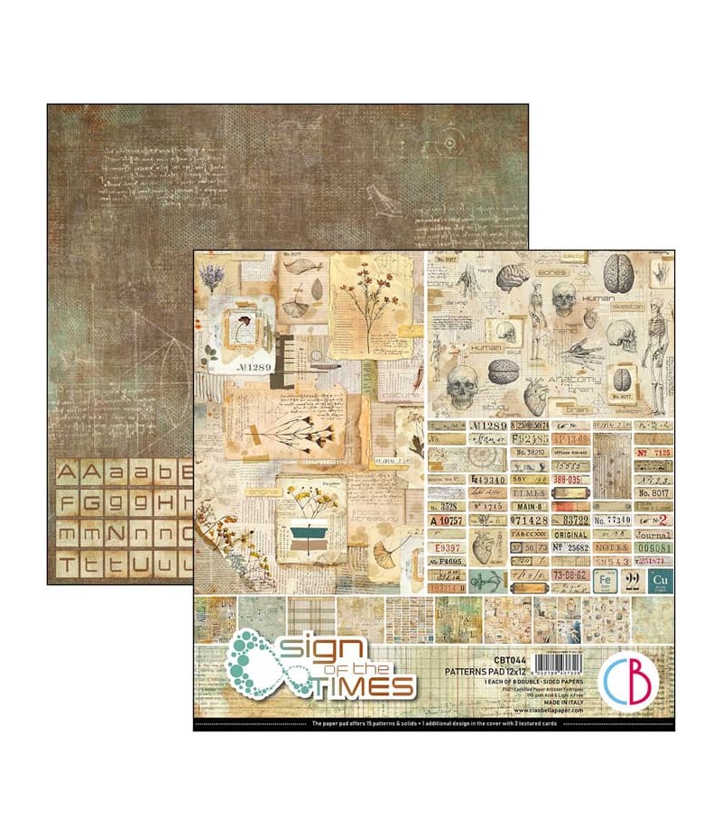 Bloc de 8 feuilles de papier double face (2 motifs) sans acide. Collection SIGN OF THE TIMES de CIAO BELLA. CBT044