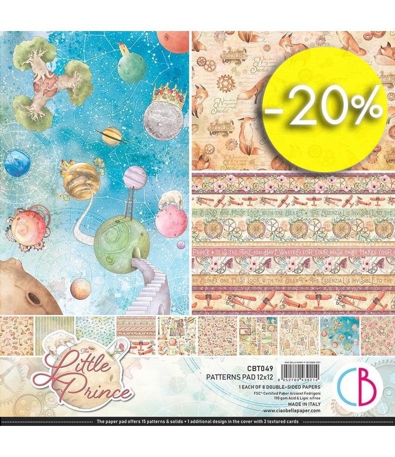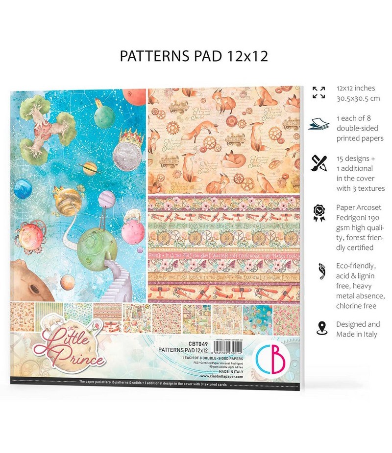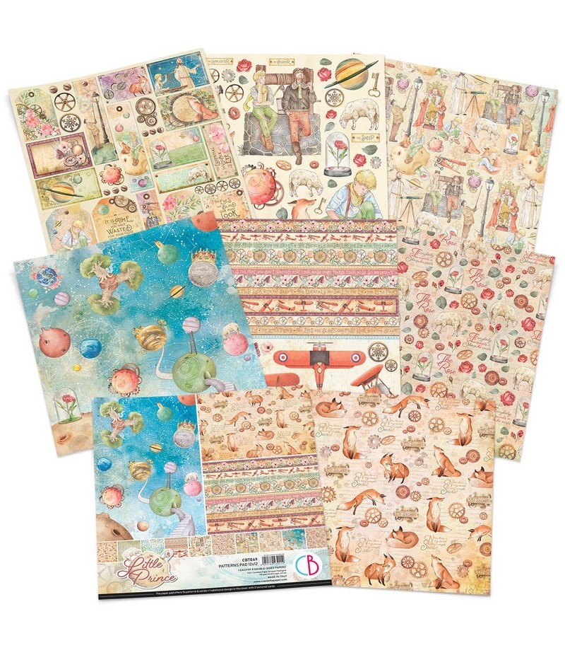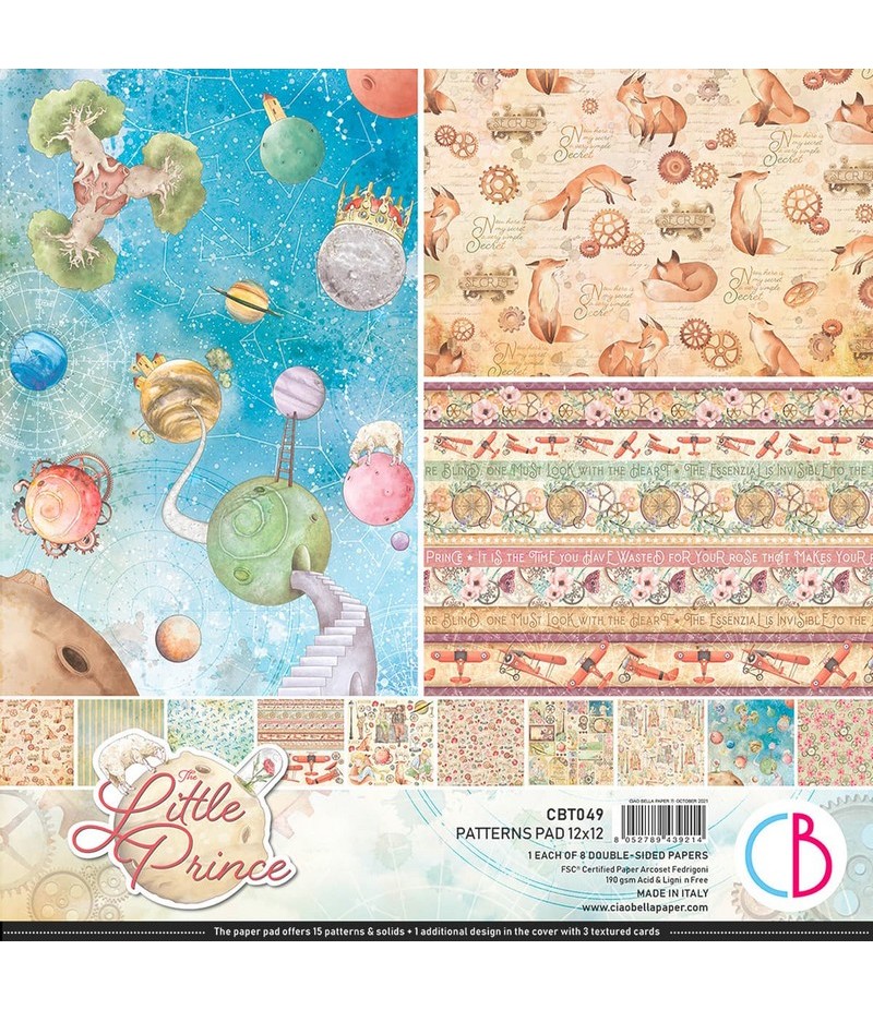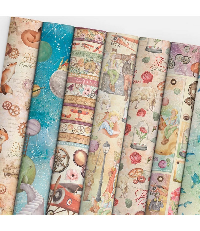Bloc de 8 feuilles de papier double face (2 motifs) sans acide. Collection THE LITTLE PRINCE - CIAO BELLA. CBT049