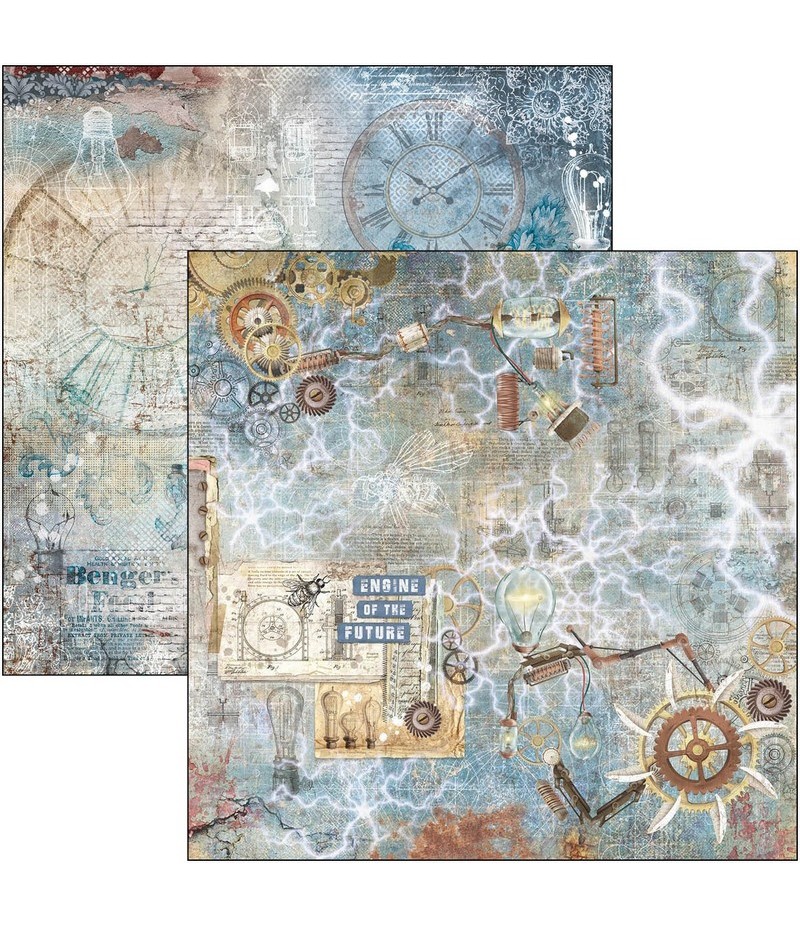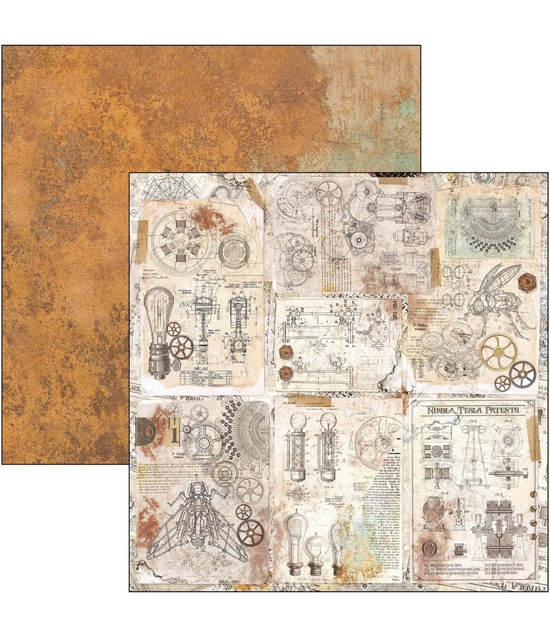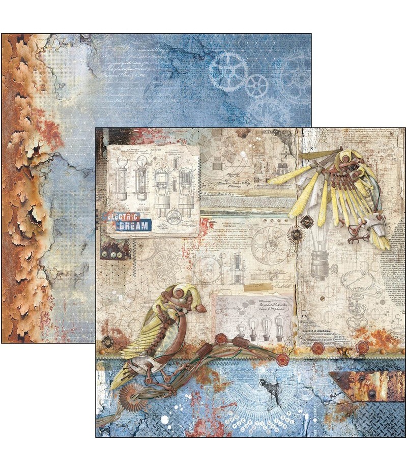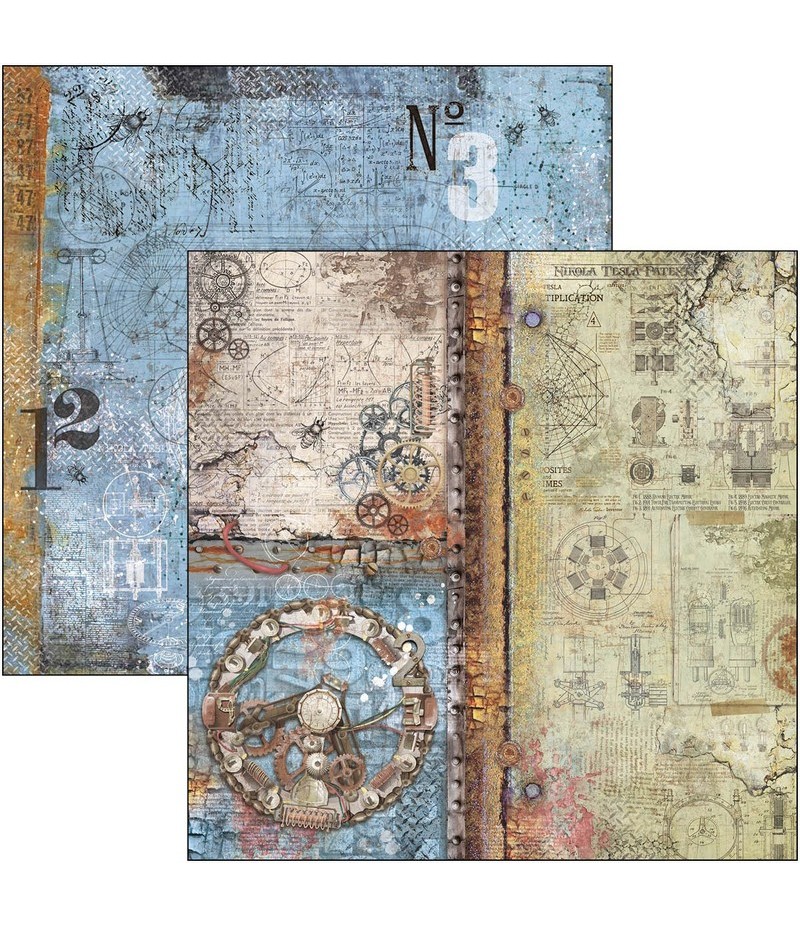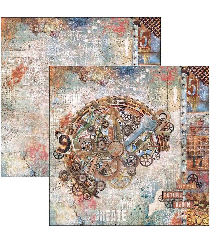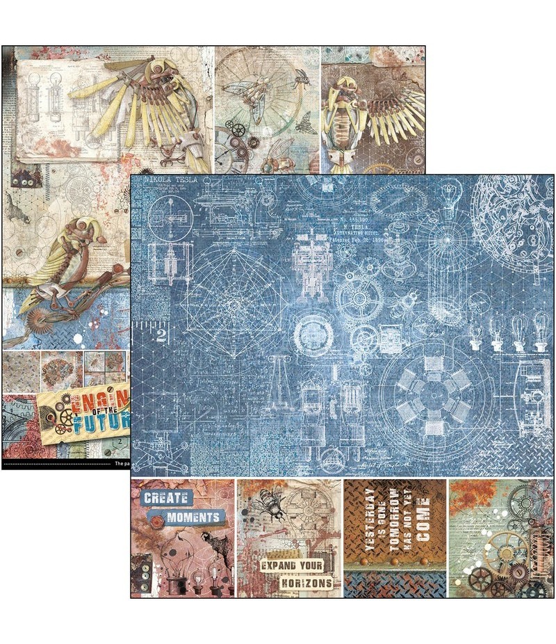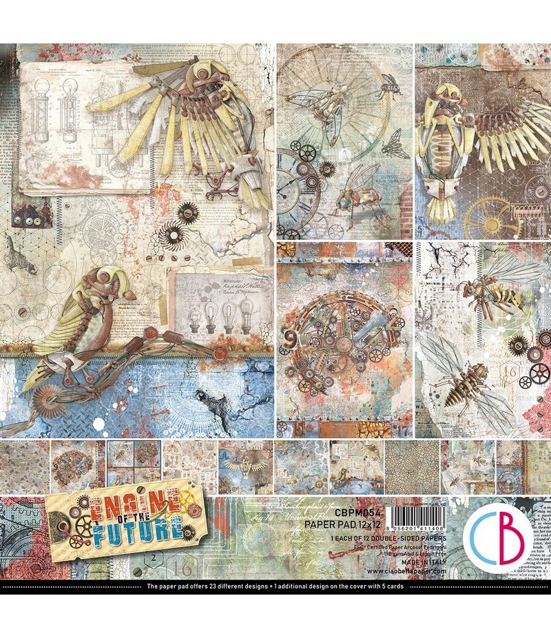 Bloc de 12 feuilles de papier double face (2 motifs) sans acide. Collection ENGINE OF THE FUTURE - CIAO BELLA. CBPM054