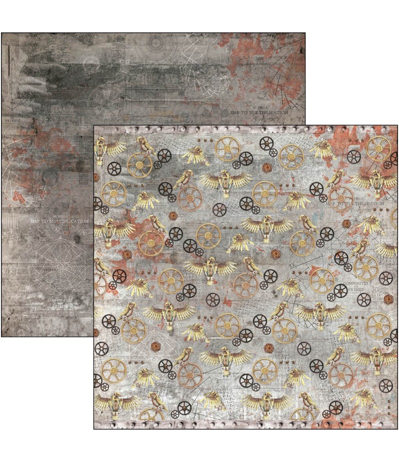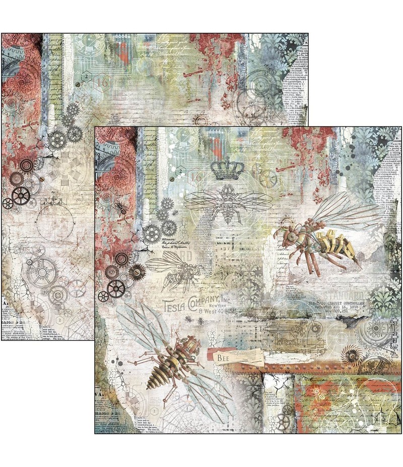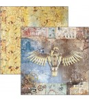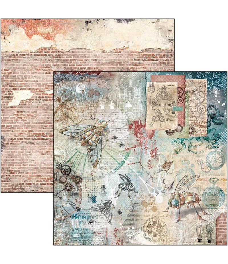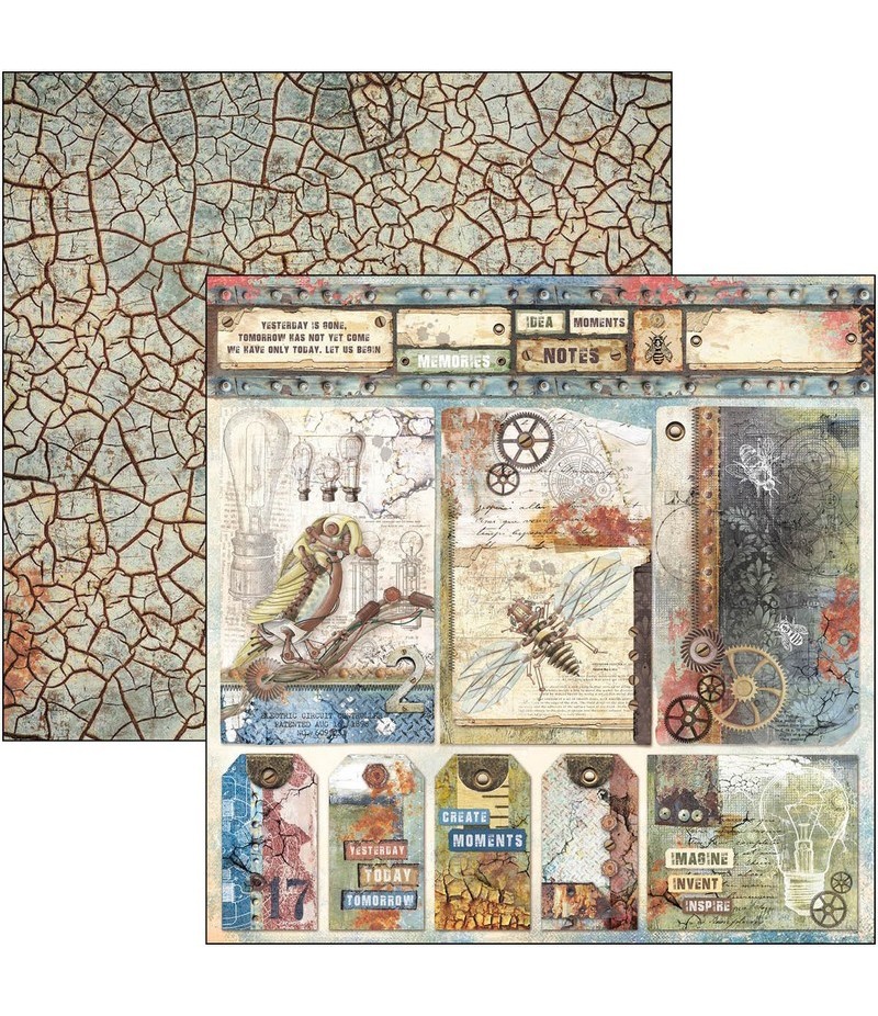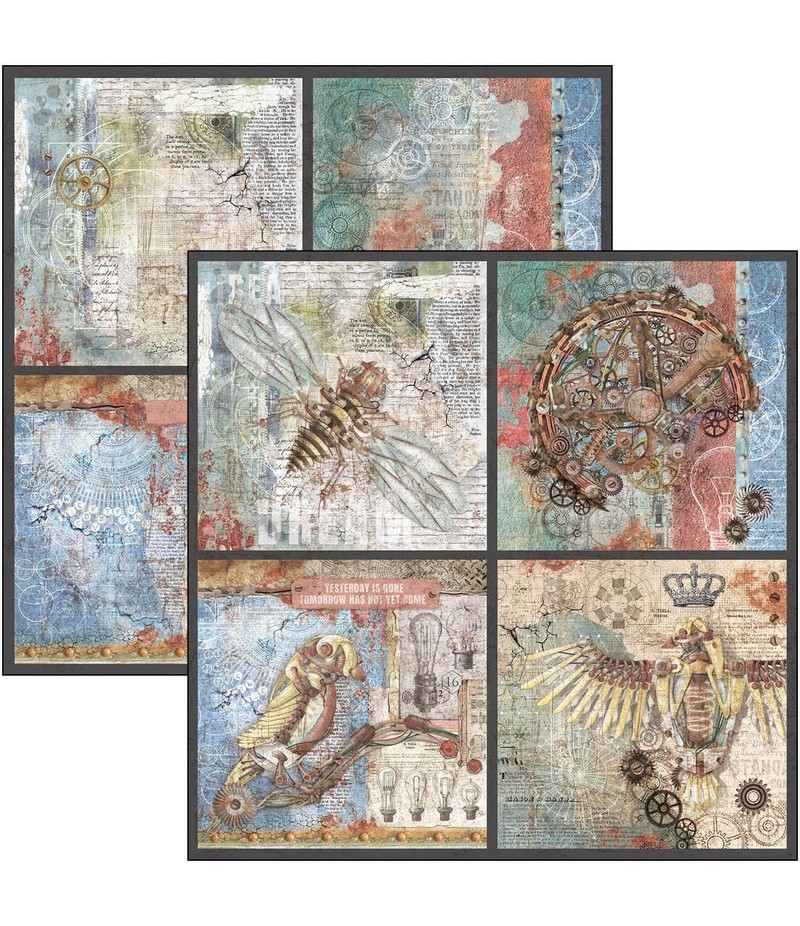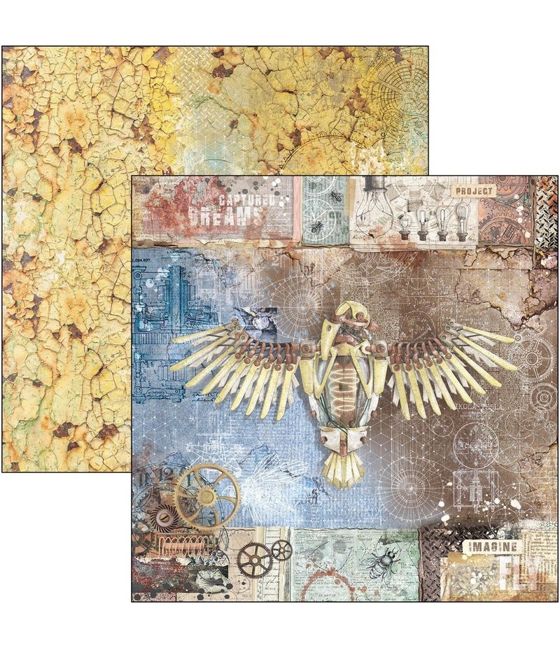 Bloc de 12 feuilles de papier double face (2 motifs) sans acide. Collection ENGINE OF THE FUTURE - CIAO BELLA. CBPM054