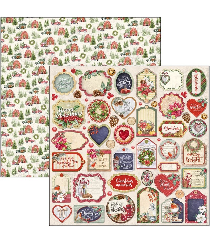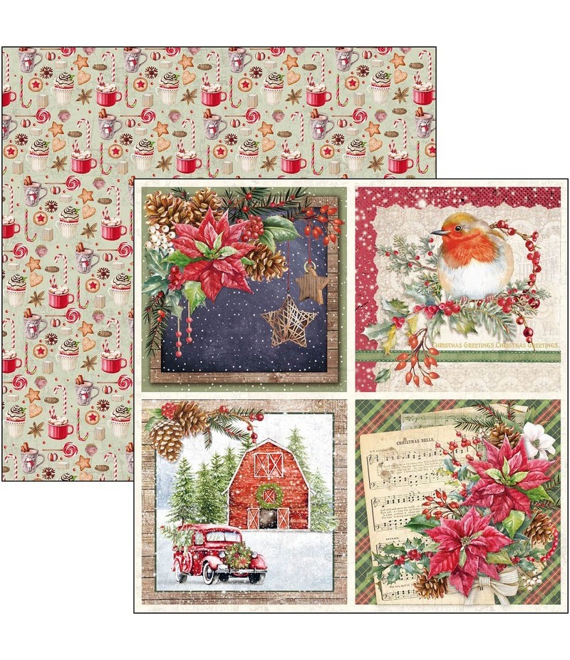 Bloc de 8 feuilles de papier double face (2 motifs) sans acide. Collection CHRISTMAS VIBES - CIAO BELLA. CBT057