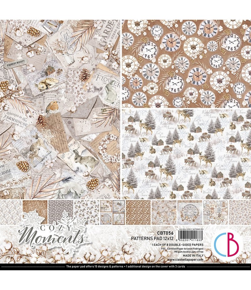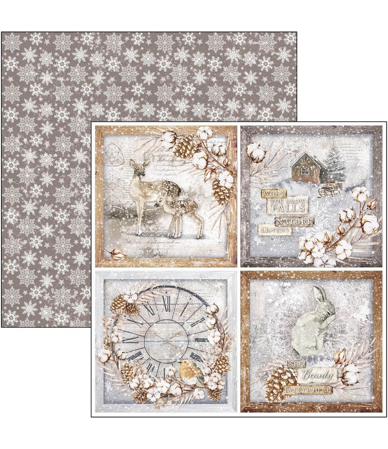 Bloc de 8 feuilles de papier double face (2 motifs) sans acide. Collection CHRISTMAS VIBES - CIAO BELLA. CBT056