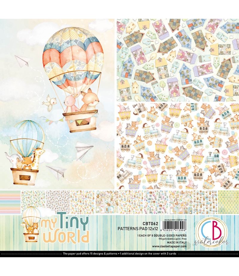 Bloc de 8 feuilles de papier double face (2 motifs) sans acide. Collection MY TINY WORLD - CIAO BELLA. CBT062