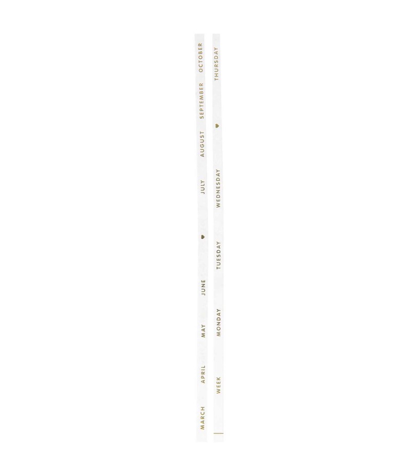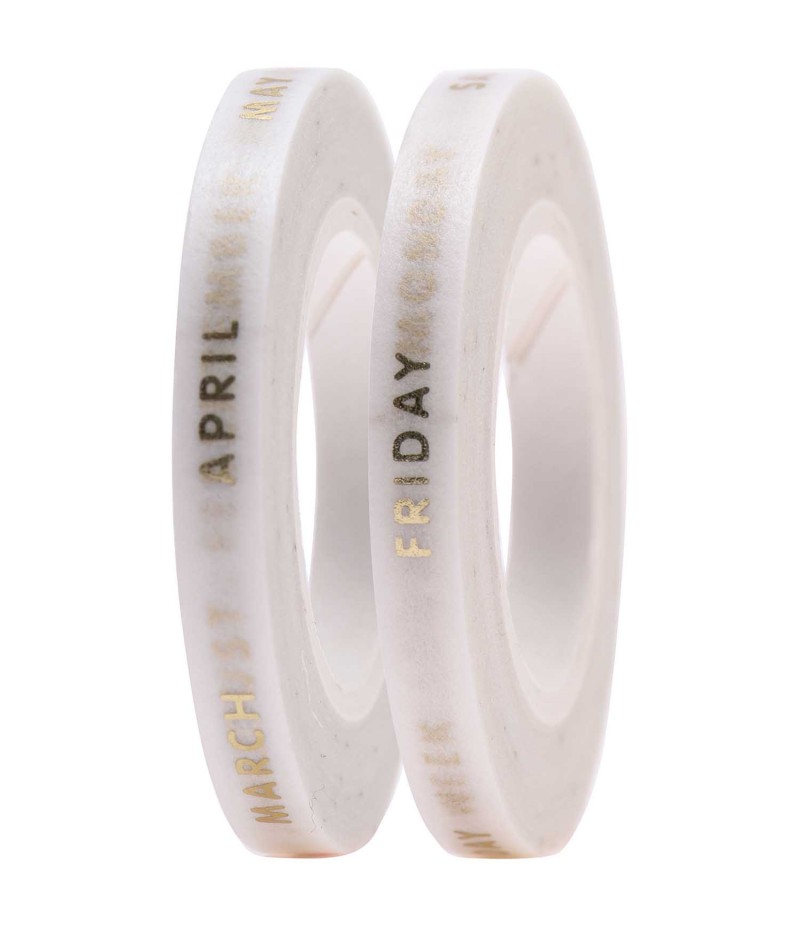 2 Rouleaux de masking tape avec jours et mois en anglais.