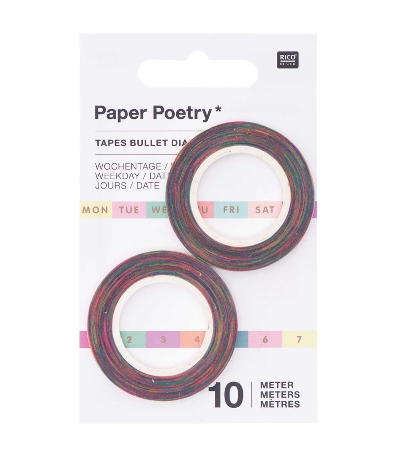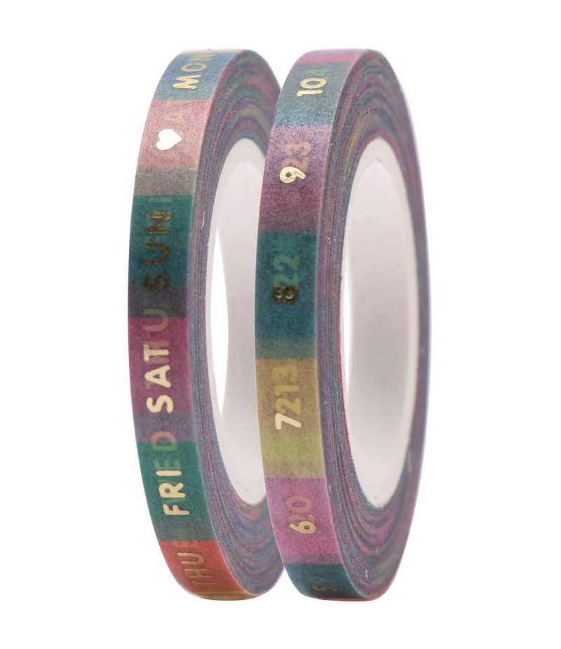 2 Rouleaux de masking tape avec jours et dates en anglais.