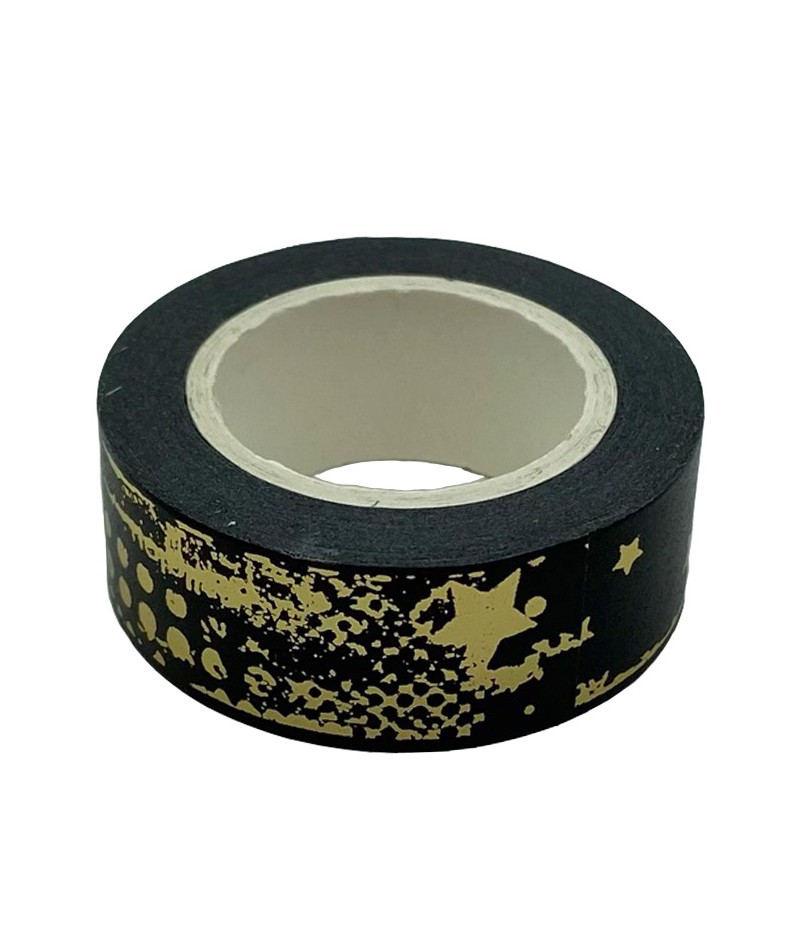 MASKING TAPE NOIR ETOILES ET POIS OR X 10 M