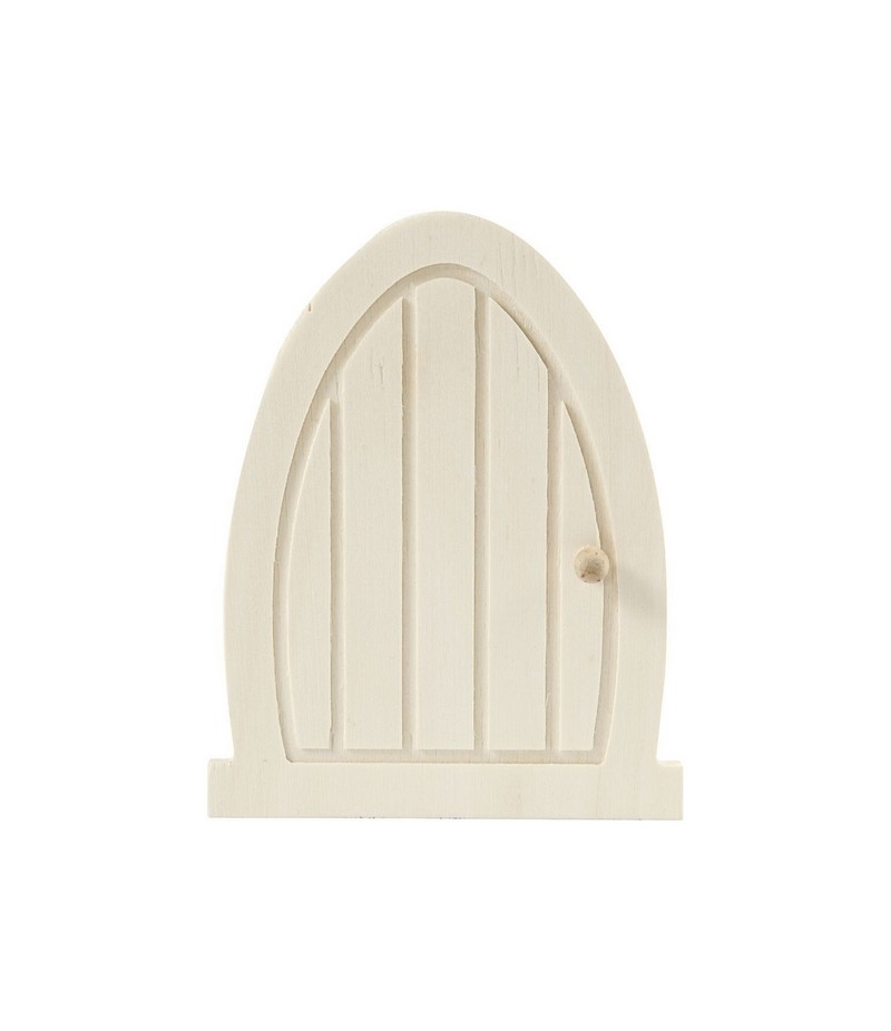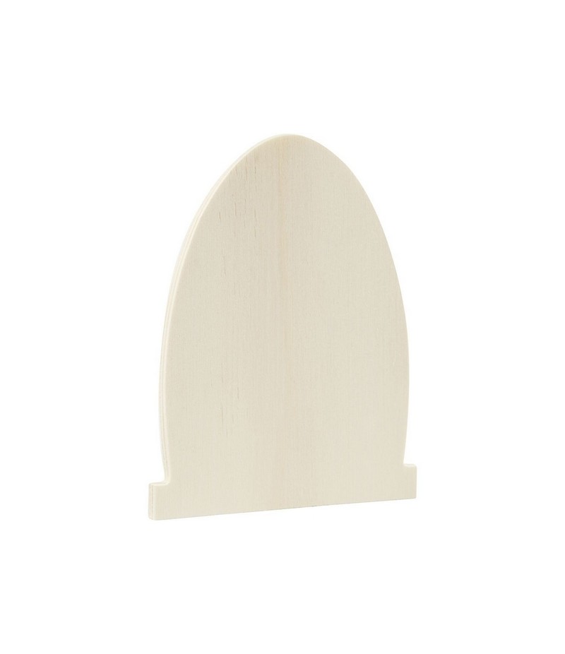 Petite porte ovale en bois clair avec poignée ronde (ne peut pas s'ouvrir).