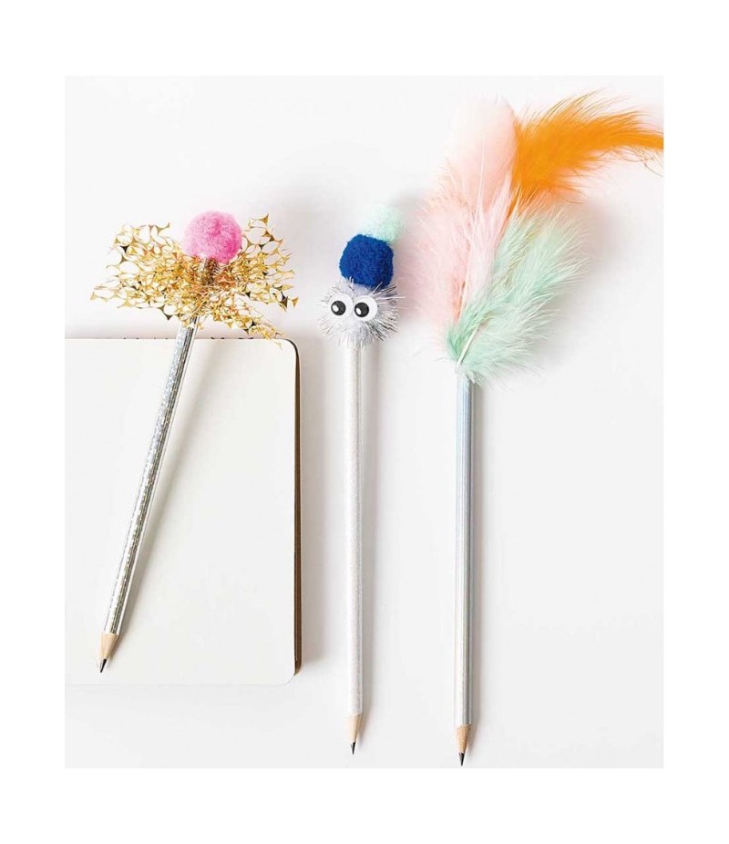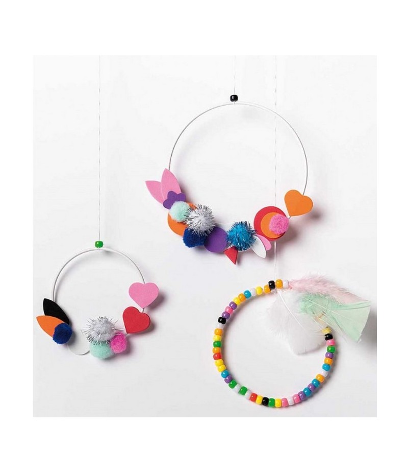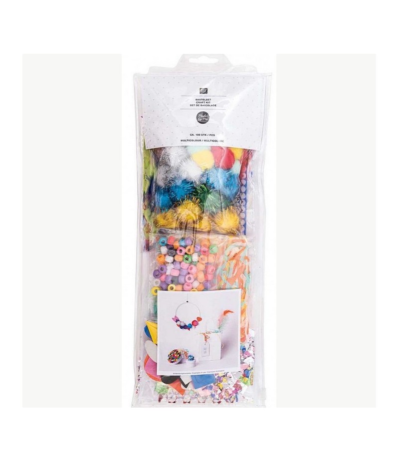 Ce kit contient : Des yeux mobiles (plusieurs tailles différentes), des plumes, des pièces de feutrines, des perles multicolores, des pompons ... et le tout dans une trousse avec zip.