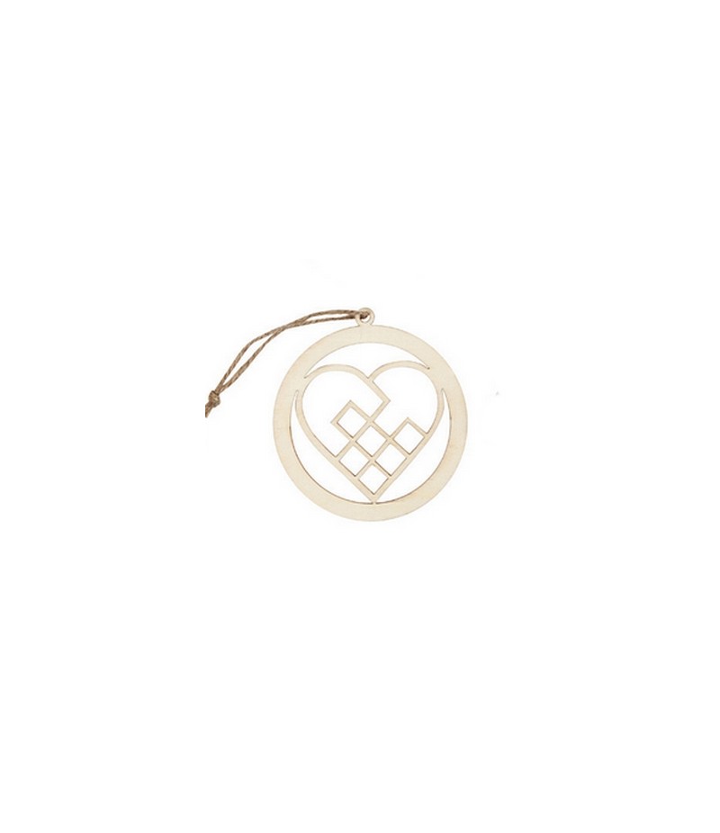 Décoration de Noël en bois clair avec bords foncés avec ficelle pour suspendre.