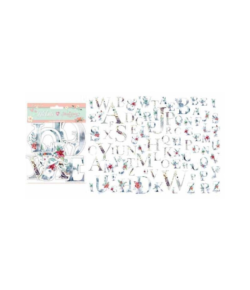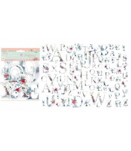 Assortiments de 85 embellissements en carton - entre 1 et 6 lettres de chaque.