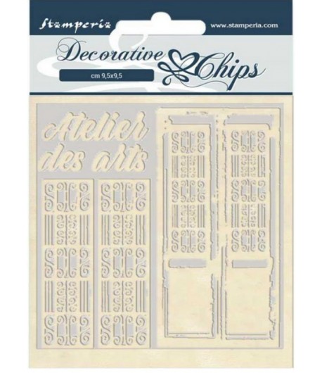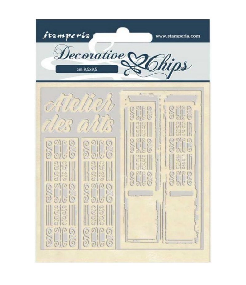 Planche d'embellissements en carton. Collection ATERLIER DES ARTS de STAMPERIA - SCB48