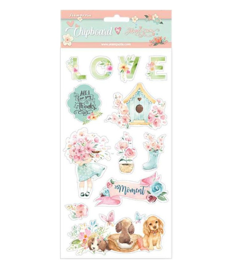 Plaque de 12 embellissements en carton - Collection CIRCLE OF LOVE de Stampéria - By JOHANNA RIVERO - DFLCB19.