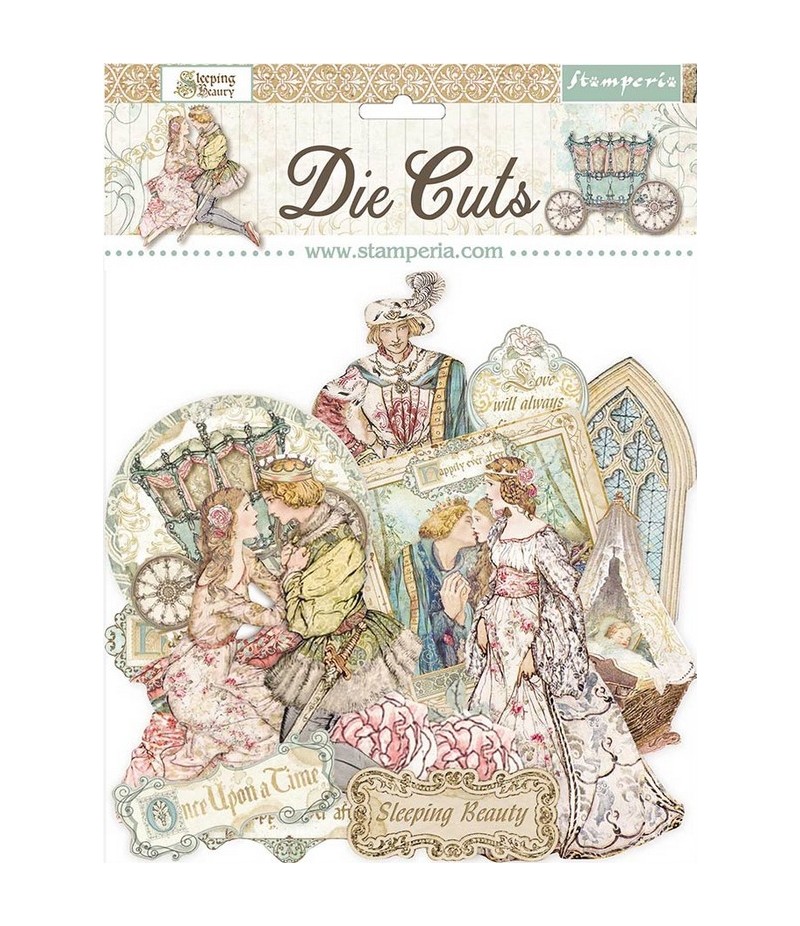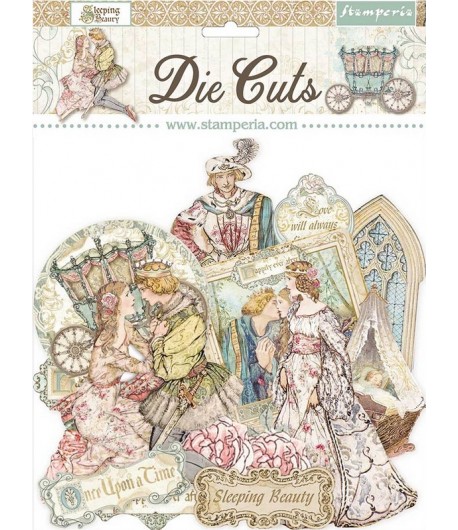 Assortiment de 38 embellissements en carton. Collection SLEEPING BEAUTY de STAMPERIA