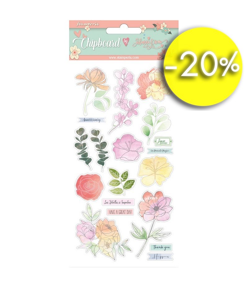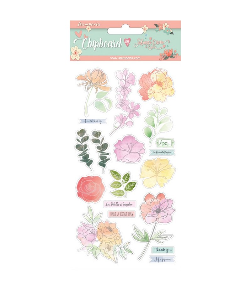 Plaque de 19 embellissements en carton - Collection CELEBRATION de Stampéria - DFLCB29.