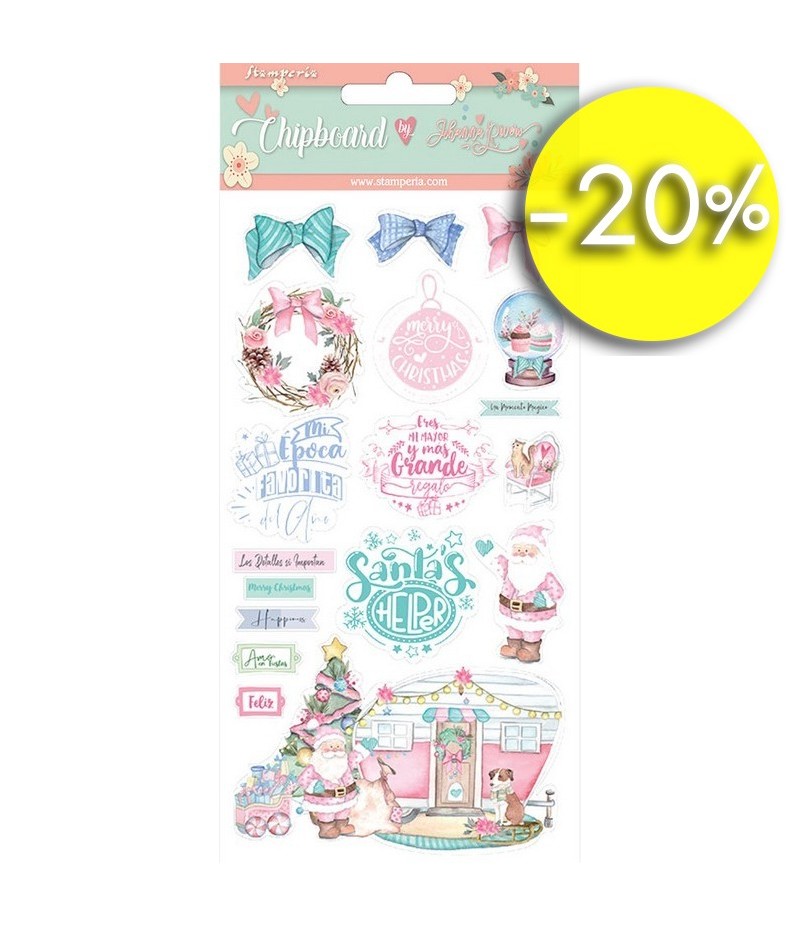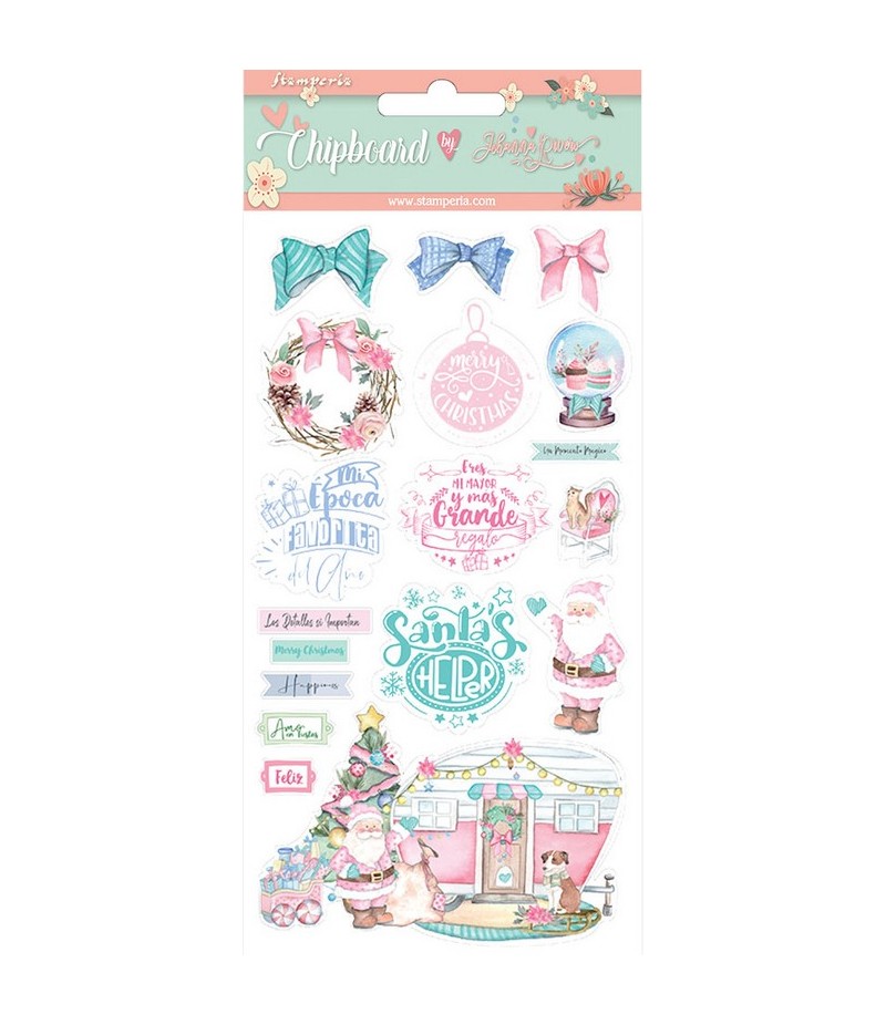 Plaque de 18 embellissements en carton - Collection CHRISTMAS ROSE by Johanna RIVERO de Stampéria - DFLCB44.