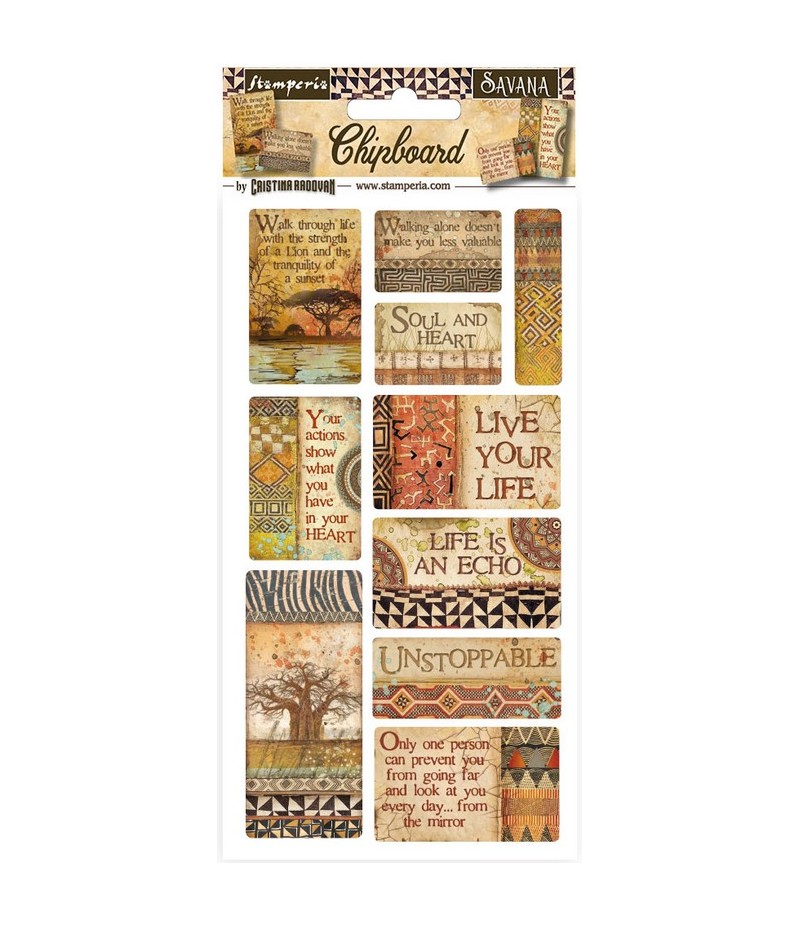Plaque de 10 embellissements en carton - Collection SAVANA de Stampéria - DFLCB55.