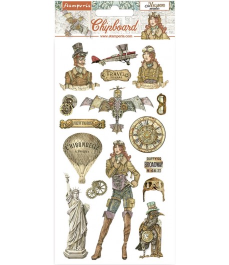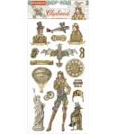 Plaque de 16 embellissements en carton - Collection SIR VAGABOND AVIATOR de STAMPERIA - DFLCB58.