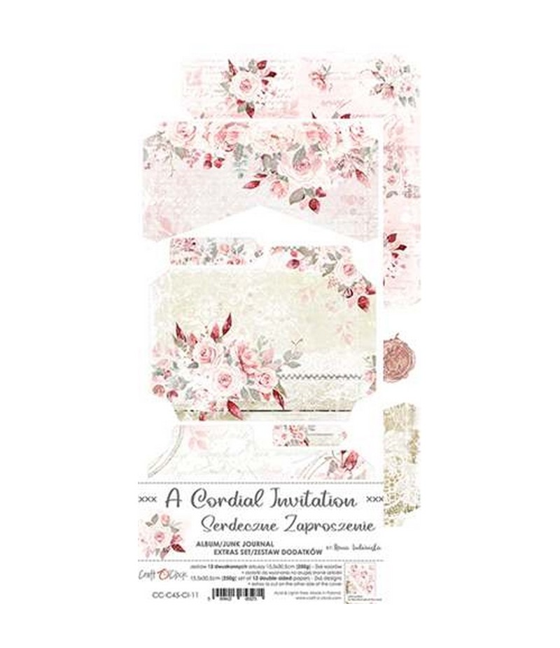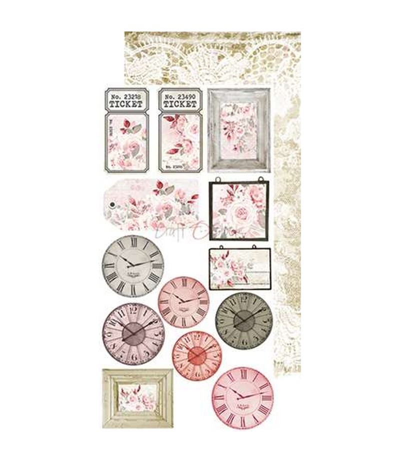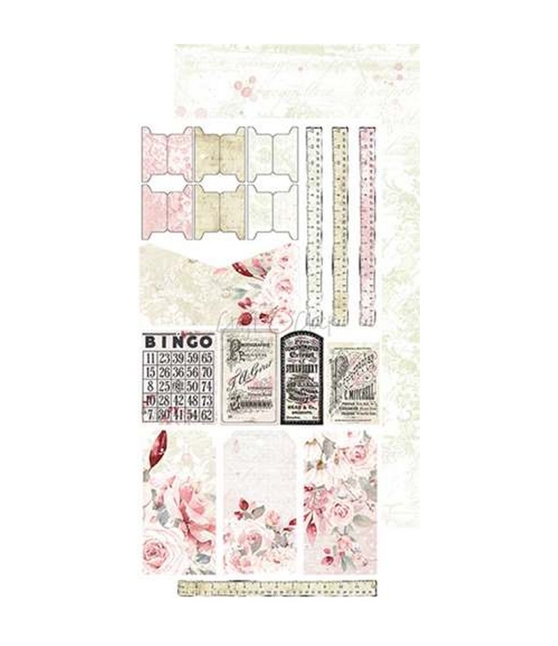 Bloc de 12 feuilles de motifs scrapbooking (pochette, étiquettes, tags...) à découper, de la marque Craft O Clock. Idéales pour réaliser un junk journal.
