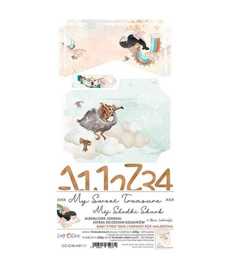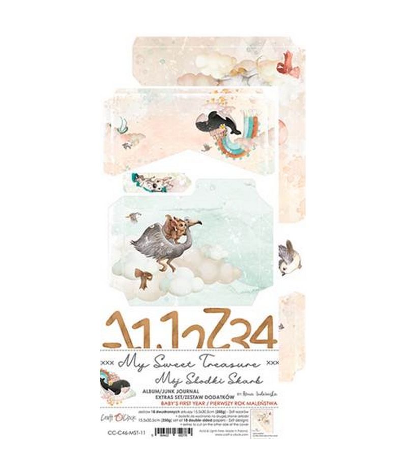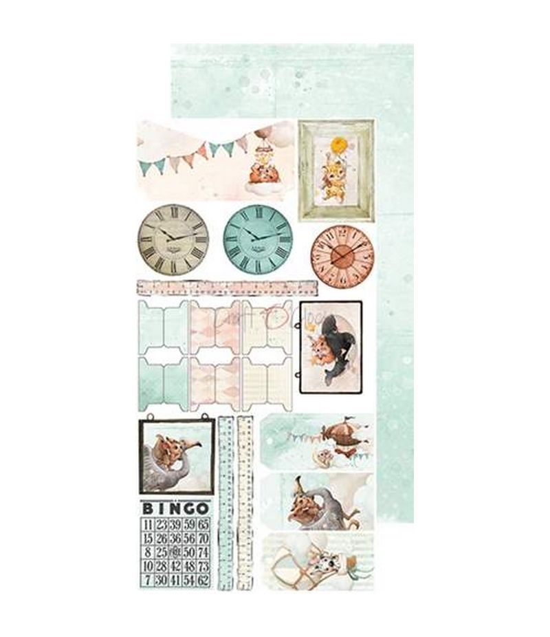 Bloc de 18 feuilles de motifs scrapbooking (pochette, étiquettes, tags...) à découper, de la marque Craft O Clock. Idéales pour réaliser un junk journal.