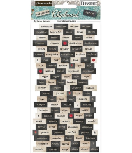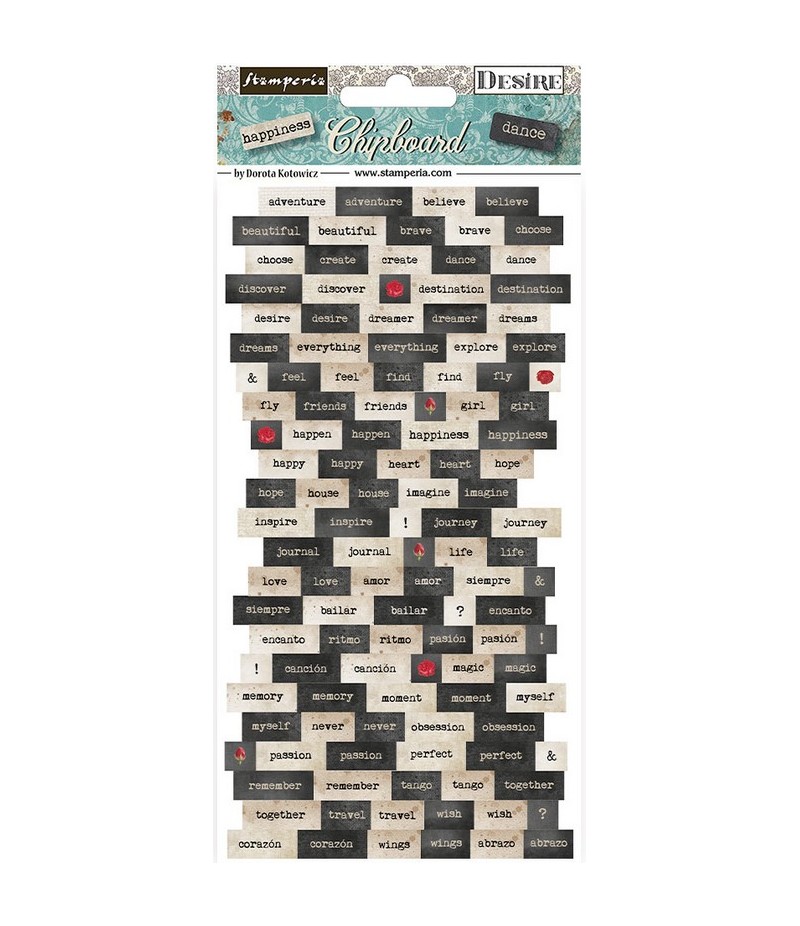 Plaque de 113 embellissements en carton - Collection DESIRE de STAMPERIA - DFLCB63.
