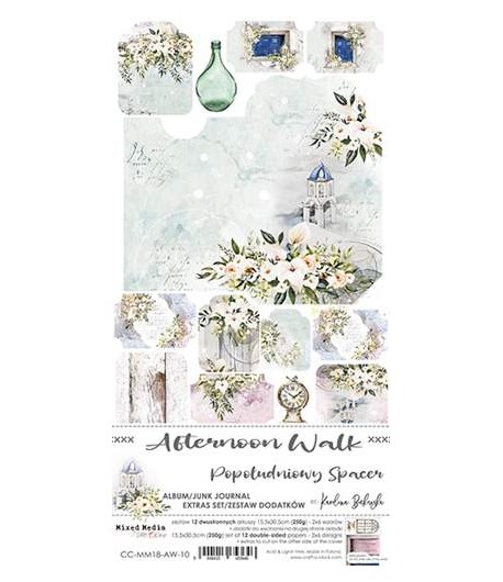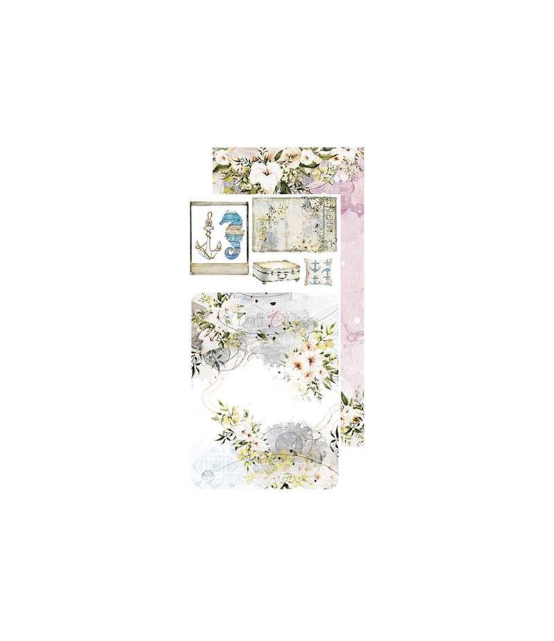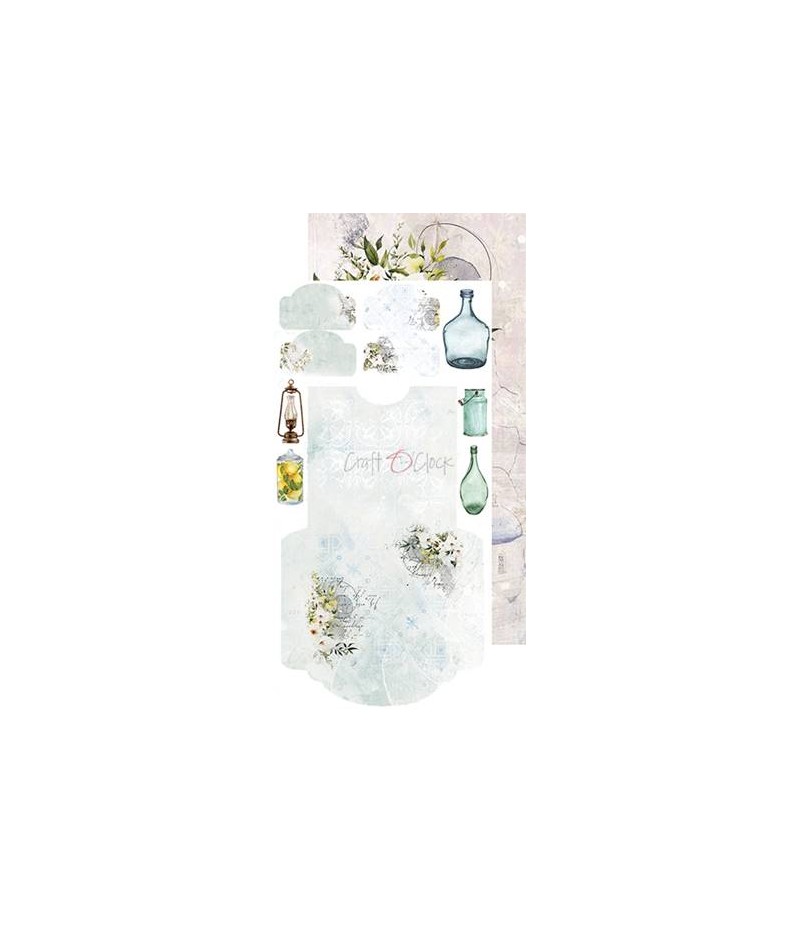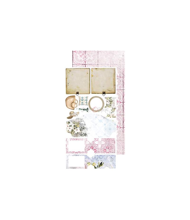 Bloc de 12 feuilles de motifs scrapbooking (pochette, étiquettes, tags...) à découper, de la marque Craft O Clock. Idéales pour réaliser un junk journal.