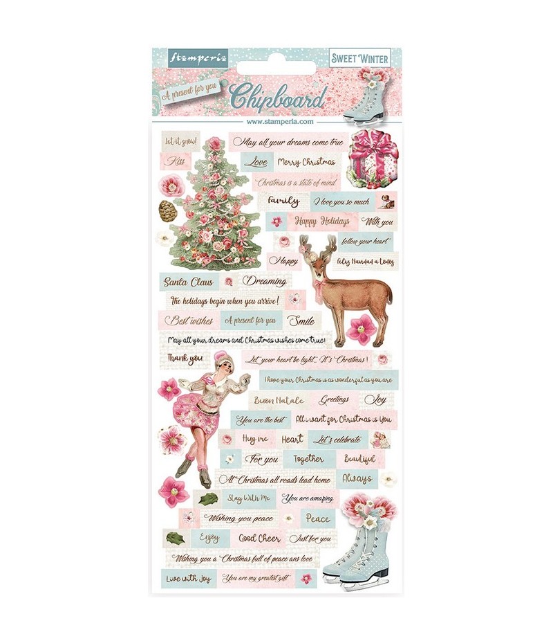 Plaque de 72 embellissements en carton - Collection SWEET WINTER de STAMPERIA - DFLCB65.